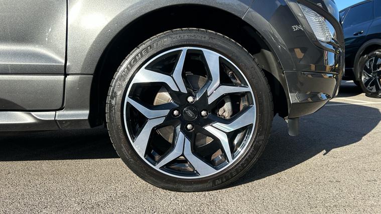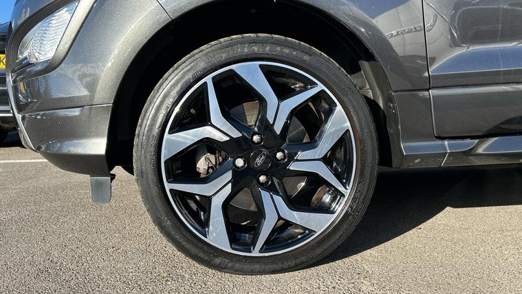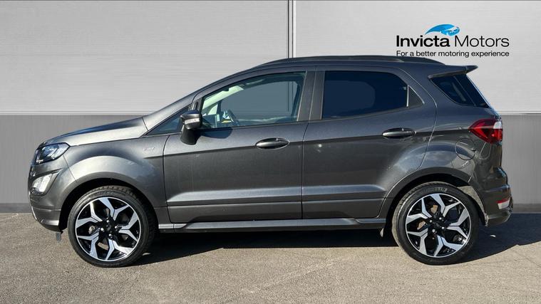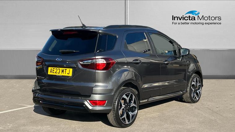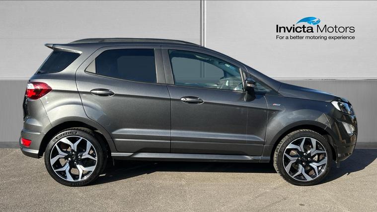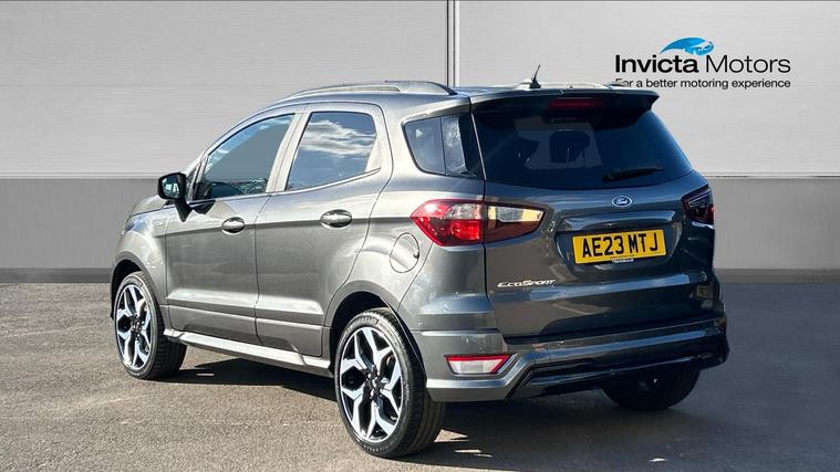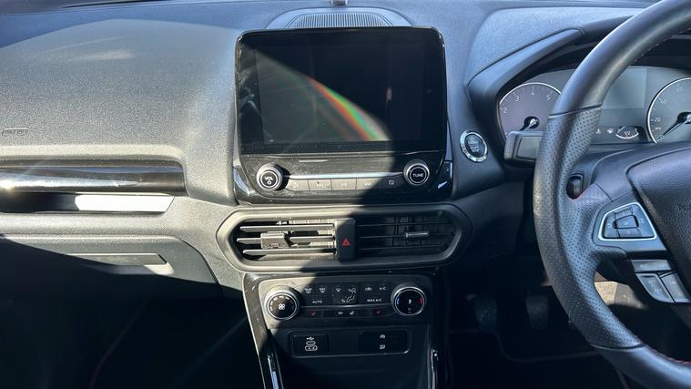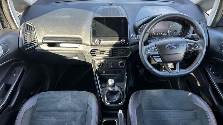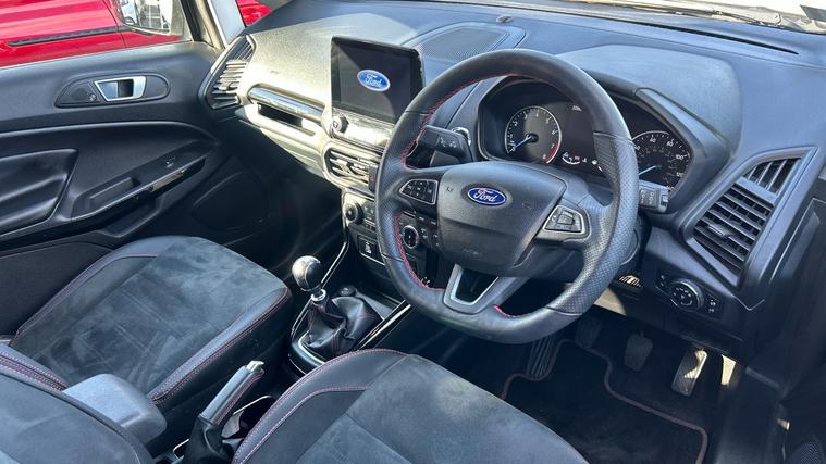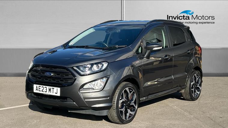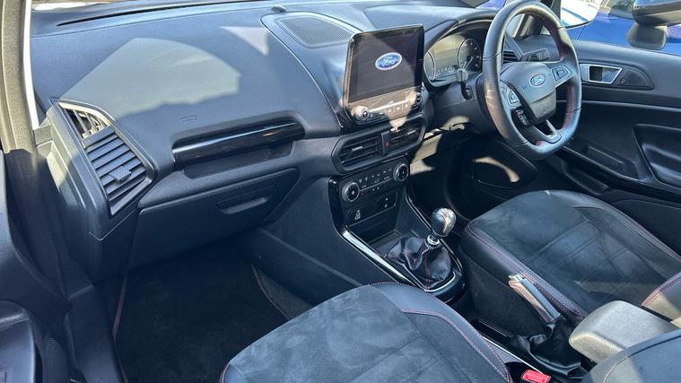 A sporty EcoSport ST-Line with great styling and everyday usability. A consistently popular hatchback. This excellent 2023 Ford EcoSport1.0 EcoBoost 125 ST-Line 5dr combines sporty styling with modern technology and everyday practicality. The ST-Line trim gives the car a dynamic look with 17-inch alloy wheels, unique ST-Line body styling kit, large rear spoiler, black detailing and LED daytime running lights, creating a sharp and athletic road presence. Inside, the cabin is designed with a sporty feel, featuring sports seats with red stitching, flat-bottom multifunction steering wheel, black headlining and a clear driver display, offering a driver-focused environment. Technology includes a touchscreen infotainment system with smartphone connectivity, DAB radio, Bluetooth and USB connectivity, ensuring a connected driving experience. Convenience features include rear parking sensors, cruise control, lane keeping assist, selectable drive modes, automatic headlights and wipers and keyless start, making everyday driving easy and comfortable. With its practical five-door layout, around 290-litre boot capacity and refined EcoBoost engine, the Fiesta remains one of the most enjoyable and well-rounded hatchbacks in its class.