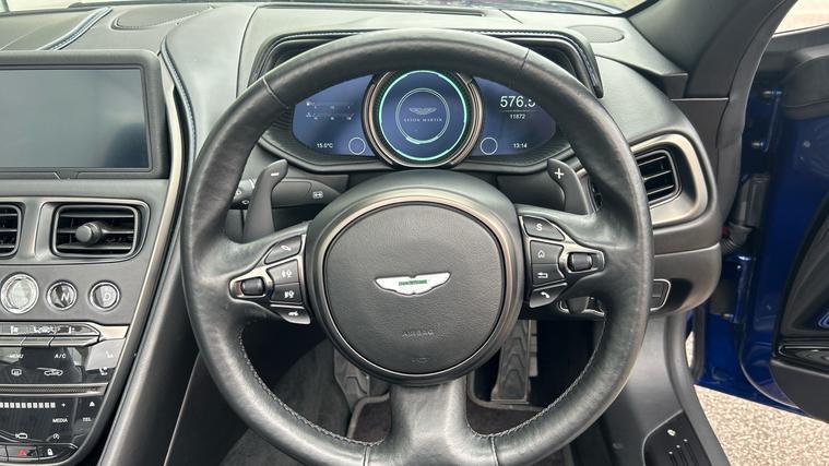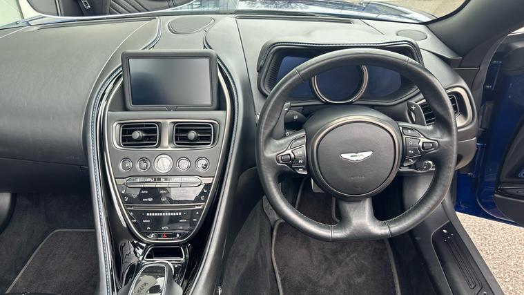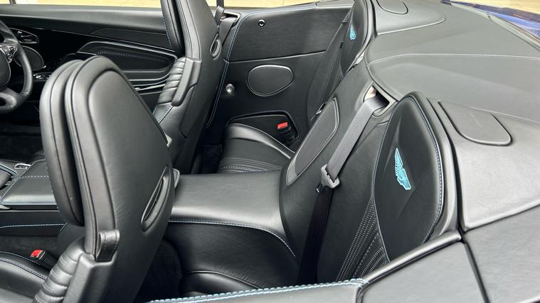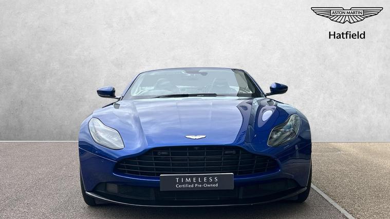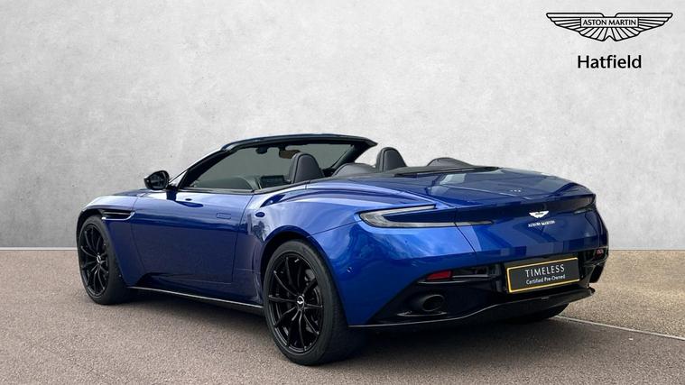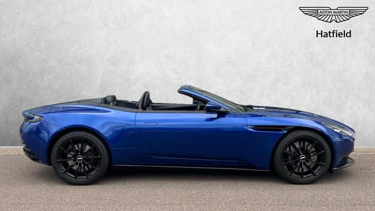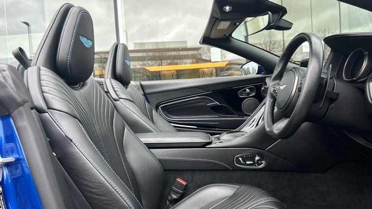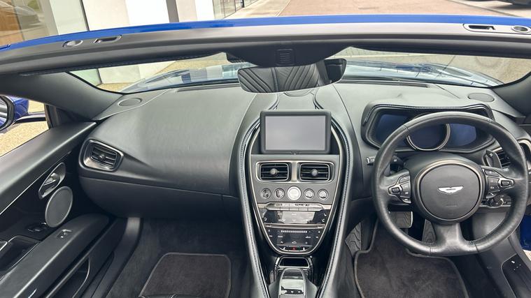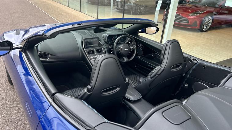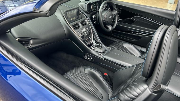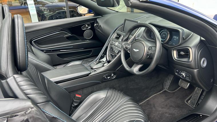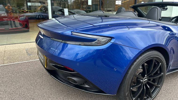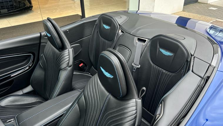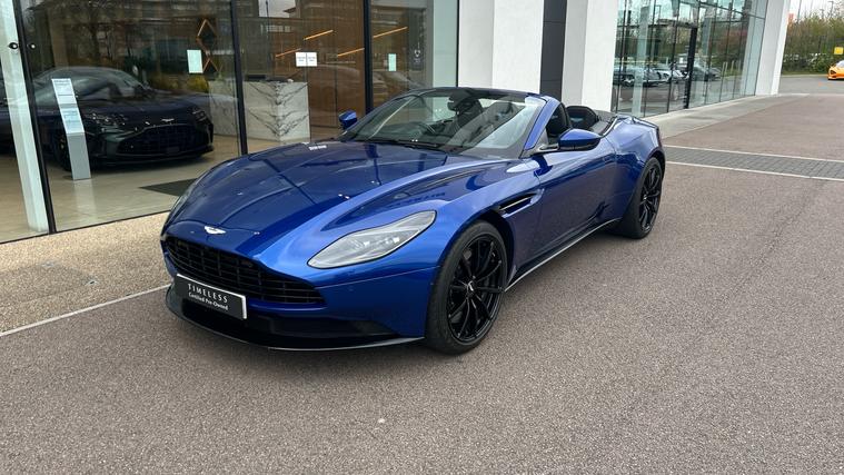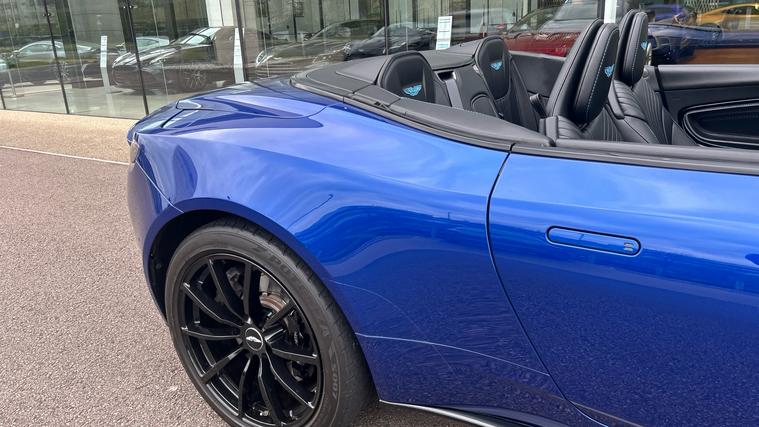 Ultra rare Q Exclusive Zaffre Blue DB11 Volante with 35K of Optional Extras and Full Aston Martin Service History. 12 Months Aston Martin Premium Warranty included. Ultra rare Q Exclusive Zaffre Blue paint on this stunning Aston Martin DB11 Volante with a contrasting Pure Black Leather interior trim. Fitted with 35K of Optional Extras including 20inch Gloss Black AMR Forged Alloy Wheels, Piano Black Trim Inlay, Interior Comfort Pack, Interior Technology Pack, Smoked Tail Lights, Satin Dark Chrome Interior Jewellery Pack, Matte Black Window Surround Finisher, Nexus Quitling Detailing, Matte Black Mesh Bonnet Vents, Dark Exterior Pack, Gloss Black Exterior Pack and Brogue Detailing. Full Aston Martin Service History and 12 Months Aston Martin Premium Warranty.