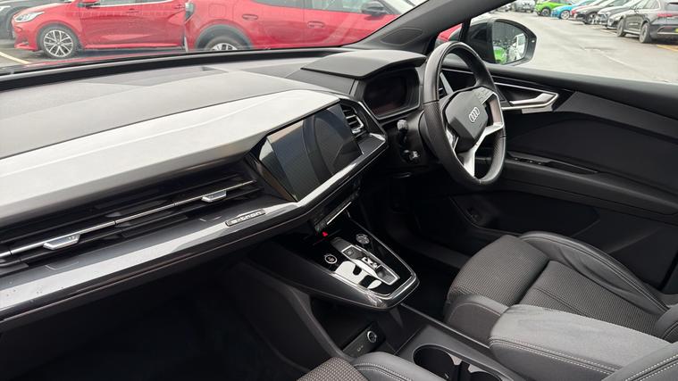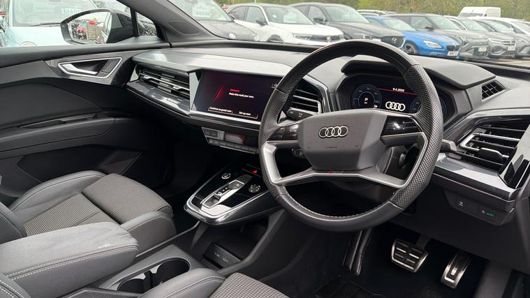 Features Include TouchScreen Navigation, Rear Parking Camera With Front And Rear Parking Sensors, LED Headlights And Heated Front Seats. Presented in excellent condition, this Audi Q4 e-tron S Line is a premium all-electric SUV that combines cutting-edge technology, refined performance and standout Audi design. With its sharp lines, bold front grille styling and athletic stance, the Q4 e-tron delivers a modern and sophisticated road presence. Powered by a smooth and efficient 150kW (204PS) electric motor, this model offers effortless, near-silent performance with instant acceleration, making every journey feel refined and responsive. The 82kWh battery provides an impressive range of up to around 300 miles (WLTP), giving you the confidence to travel further with ease. Charging is both quick and convenient, with support for rapid DC charging, allowing you to top up the battery efficiently on longer trips, while home charging keeps daily running simple and cost-effective.