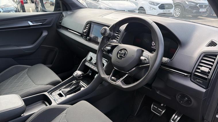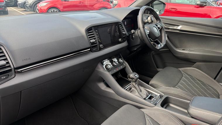 Features Include Digital Cockpit, Rear Parking Sensors With Camera, Dual Zone Climate, Adaptive Cruise And Apple Carplay And Android Auto Connectivity. Presented in excellent condition, this koda Karoq SportLine DSG is a dynamic and well-equipped family SUV that combines sporty styling, everyday practicality and refined performance. With its sleek black styling accents, distinctive SportLine detailing and confident stance, the Karoq offers a more athletic take on a highly versatile SUV. Powered by a responsive 1.5-litre TSI turbocharged petrol engine, producing 150PS, this model delivers smooth and efficient performance, perfectly suited to both urban driving and longer motorway journeys. The advanced DSG automatic transmission ensures seamless gear changes, providing a relaxed and effortless driving experience.