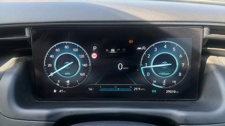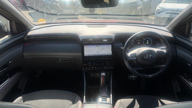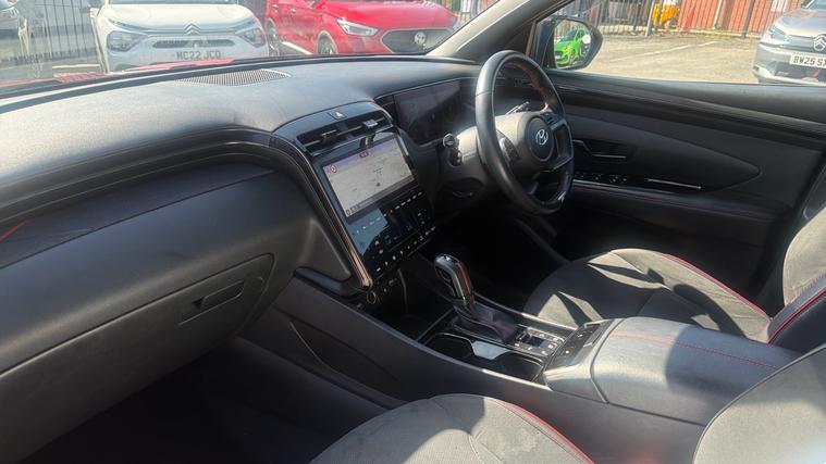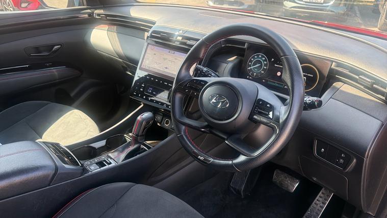 Features include Rear Parking Sensors wa Rear Camera, Dual Zone Climate Control, Folding Mirrors, Dusk Sensors, Lane Assist and even Highbeam Assist. Our 2021 Tucson is a fantastic looking family SUV based on the i30 hatchback. This 'N Line' trim comes with all desirable features as standard and complimented with 17in Alloy Wheels. 'Leather-Suede - Black with Red Stitching' upholstery decorates the cabin perfectly and includes a range of Soft Touch Materials and Piano Black Accents throughout. Isofix Points are located in the rear for younger children if needed. A 8in display takes pride of place on the dashboard with connections included to DAB radio bands, Bluetooth and USB media connections and even Apple Carplay and Android Auto. Navigation is also featured and includes Traffic Management Systems to avoid congestion.