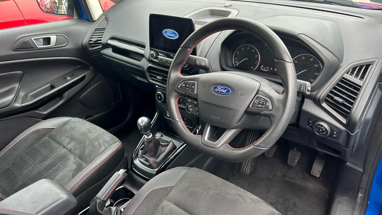 Sporty ST-Line EcoSport with great spec, efficient drive, and excellent condition throughout, ready to go. This 2023 Ford EcoSport 1.0 EcoBoost 125 ST-Line offers sporty styling and everyday practicality, powered by a responsive 1.0 EcoBoost petrol engine delivering 125 bhp with smooth manual performance and great efficiency. Inside, it features Ford SYNC 3 with an 8-inch touchscreen, built-in navigation, Apple CarPlay/Android Auto, and Bluetooth connectivity. With ST-Line body styling, sports suspension, partial leather interior, automatic climate control, cruise control, reversing camera, and rear parking sensors, this compact SUV delivers comfort, technology, and a confident driving experience.