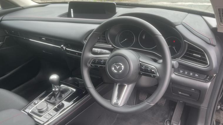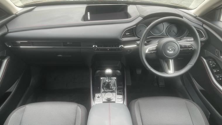 Specification of this our Mazda CX-30 includes Heated Front Seats, Wireless Charging, Folding Mirrors, Mazda Navigation, Reverse Camera and even Apple CarPlay/Android Auto. Experience driving like never before with the Mazda CX-30 2.5 e-Skyactiv G MHEV Homura. Seamlessly connect with the 10.25in Colour Centre Display featuring DAB Radio, 8 speakers, and Integrated Bluetooth. Enhance every journey with the Mazda Hybrid Navigation System and Alexa In-Car Voice Assistant. Stay charged with QI Wireless Charging, while Wireless Apple CarPlay and Wired Android Auto keep you connected. Safety is paramount with Blind Spot Monitoring, Rear Cross Traffic Alert, and a Reversing Camera. Enjoy adaptive cruise control and Traffic Sign Recognition for effortless cruising. Comfort meets innovation with 3-stage Heated Front Seats. Welcome to the future of driving.