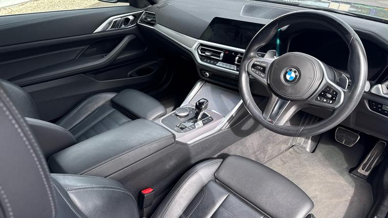 LOVELY EXAMPLE OF THE 420i Coupe and very rare with less than 15000 miles. Experience the perfect fusion of performance and elegance with the BMW 4 Series 420i M Sport Coupe. This 2022 model, in mesmerizing metallic blue, boasts a sleek design with just one careful owner and only 14, 380 miles. Revel in the sophistication of black leather interiors and cutting-edge navigation for an elevated driving experience. With 18-inch alloys and a meticulously maintained engine serviced at 9, 587 miles, this coup promises exhilarating drives with every turn. Elevate your journey with BMW's trademark precision and luxury. Discover the ultimate driving pleasure with the BMW 420i M Sport. Where will it take you next.