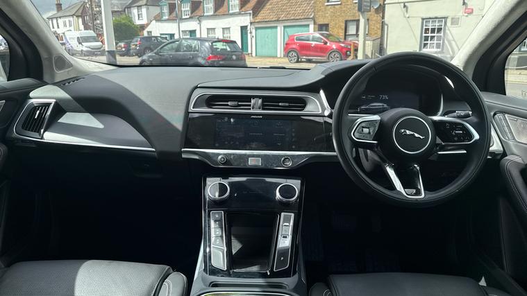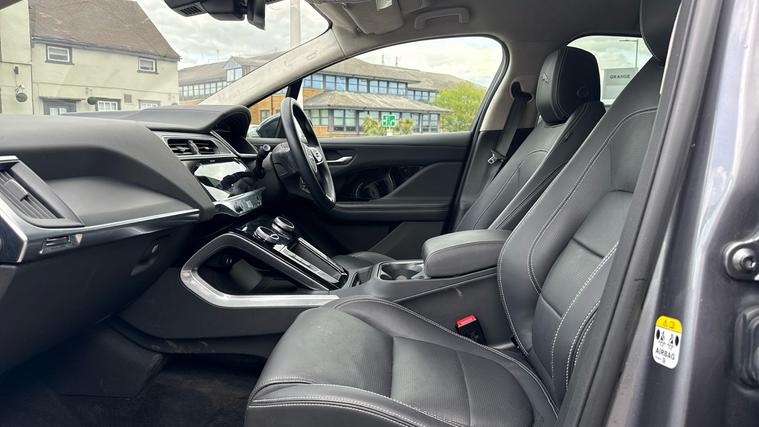 Facelift one owner I-Pace in HSE spec with main dealer service history. Call now for the full details and to check availability. *10.9 Representative APR available. Finished in Eiger Grey Metallic with Ebony Hide Sports Seats. Top HSE spec I-pace with 20 inch srtyle 5068 Diamond Turned alloys, Glass Panoramic sunroof, Front and rear parking sensors wth rear view camera, Power tailgate, Premium LED headlights, Apple car play / Android auto, Meridian sound system, Heated and cooled multiway adjustment leather seats with driver's memory settings, Heated windscreen, Heated steerig wheel, Dual zone climate control, All wheel drive, Adaptive cruise control, Blind spot assist, DAB Radio, Directional indicators, Head up display, 4 way lumbar support to front seats, 10 inch infotainment screen, keyless entry, Privacy glass, Voice activated controls, Reverese traffic detection, Lane keep assist. Call now for the full details and to check availability. *10.9 Representative APR available.