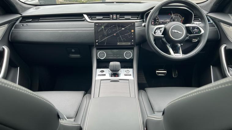 One of the last F-pace, registered in January 2025 offered in the 90th anniversary spec and purchased directly from Jaguar Cars Ltd. Finished in Santorini Black Metallic with Ebony Leather interior. Features and sprecification includes 21 inch Style 5104 Diamond Turned with Satin Dark Grey contrast alloy wheels, All Wheel Drive, Panoramic sunroof, 16-way heated and ventilated massage electric memory front seats with 2-way manual headrests and 4-way lumbar adjust, Heated windscreen, Heated steering wheel, Meridian(TM) Sound System, Apple car play / Android auto, Privacy glass, LED headlights, Premium LED headlights with signature DRL, Front and rear parking sensors with rear view camera, Power tailgate, Blind Spot Assist, Configurable Dynamics, Electrically adjustable steering column, Ebony suedecloth headlining, Animated Directional Indicators, Keyless Entry, Lane Keep Assist + Upcoming Traffic Alert, 40:20:40 split fold rear seat, Illuminated metal treadplates with Jaguar script, JaguarVoice system, Adaptive Cruise Control with Steering Assist, Animated Directional Indicators, Configurable cabin lighting and Dual zone climate control. Call now for the full details and to check availability. *10.9 Representative APR available.