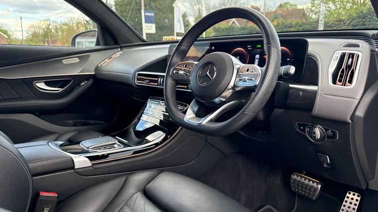 The Mercedes EQC 400 AMG Line comes equipped with Navigation, Rear Camera and Multibeam LED Headlights. This 1 Owner example won't last long so call 01403488254 today to book a test drive!. Introducing the Mercedes-Benz EQC 400 AMG Line! This luxury EV looks timeless in Black Metallic with Chrome Trim. Drive effortlessly with Navigation, Cruise Control and Blind Spot Assist. Connect with Apple CarPlay or Android Auto, while DAB Radio guarantees endless entertainment. Parking is a breeze with a Rear View Camera and Sensors. Convenience is key with a Power Tailgate, Auto Multibeam LED Headlights and Privacy Glass. Revel in comfort with Part Leather Upholstery, Ambient Lighting, Heated Seats and Climate Control. Book an appointment now!.