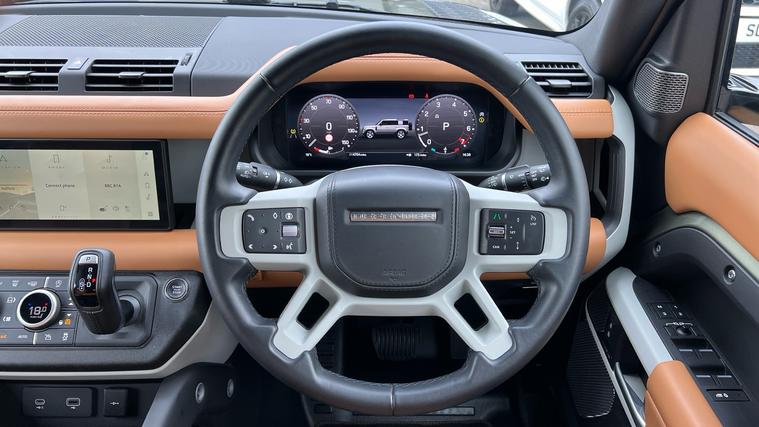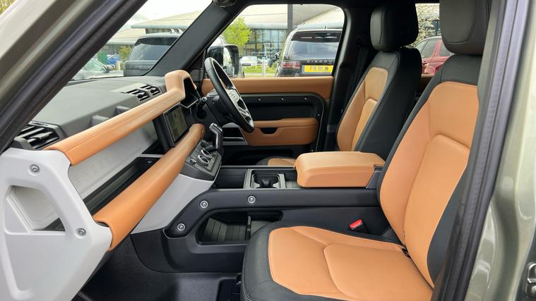 This stunning Pangea Green Defender 110 is presented in a fantastic specification, equipped with the Family Pack for seating for up to 7 passengers, and a fantastic Vintage Tan interior. Our Defender 110 X-Dynamic SE 7-seater is finished in Pangea Green matched with and 20-inch Style 5094 wheels in Gloss Black, over Vintage Tan and Ebony split Windsor Leather interior, and comes equipped with some fantastic features and optional extras, including, 14-way Heated and Cooled front seats with Memory function, Three-zone Climate Control, Cabin Air Purification Plus, Meridian Sound System, Privacy Glass, Sliding Panoramic Roof, LED Headlights with Signature DRL, Keyless Entry, Adaptive Cruise Control, Lane Keep Assist, Blind Spot Assist, 360-degree Parking Aids, 3D Surround Camera, Wireless Apple CarPlay and Android Auto, DAB Radio, Air Suspension Pack, and much more. Call today for more information.
