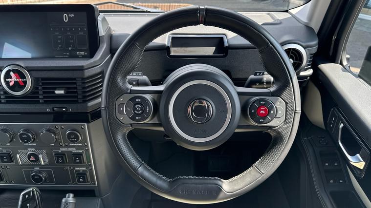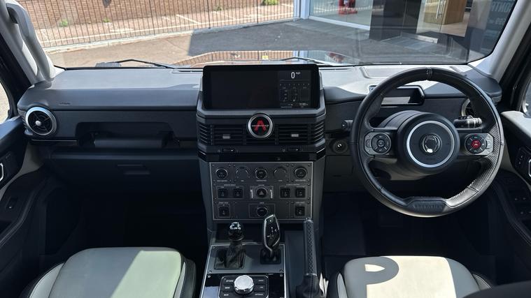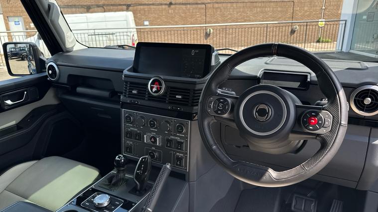 BMW Powered 3 Litre 6 Cylinder 250 bhp Diesel with some fantastic options including BF Goodrich all terrain tyres safri windows Recaro Leather interior and Towbar. Introducing the INEOS Grenadier 3.0 TD 6dr Auto, a vehicle crafted for those who demand reliability and rugged performance. Dressed in Donny Grey, this robust machine features striking Black and Grey two-tone leather interior, ensuring durability and comfort. Its 17-inch Grey alloys, fitted with BF Goodrich all-terrain tyres, guarantee unrivaled off-road capability. Equipped with Safari Windows, front and rear diff locks, side steps, and a fixed towbar, the Grenadier is ready for any adventure.