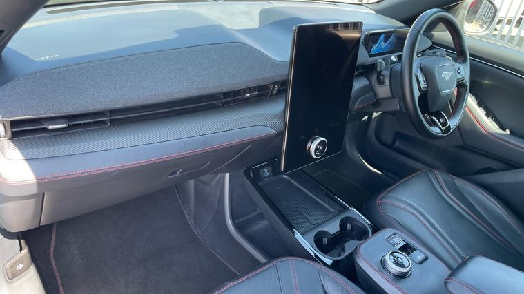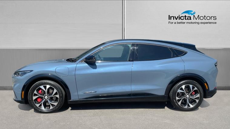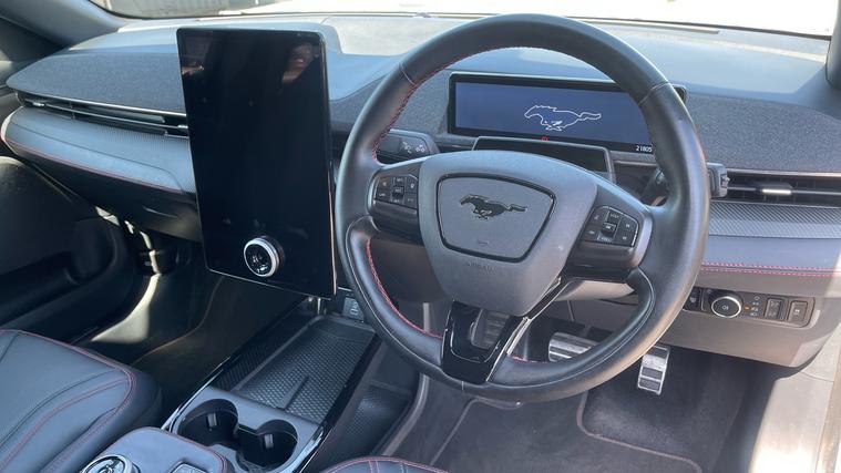 Our Mustang Mach-E Extended Range 91kWh Premium features Front/Rear Parking Sensors, Heated Front Seats, Keyless Start, Heated Steering Wheel and 360 Degree Camera. Experience electric performance and premium technology with the Ford Mustang Mach-E Extended Range. This sleek 5-door masterpiece offers a dynamic driving experience. The intuitive Ford Sync 4A controls your journey with a stunning 15.5-inch touchscreen. Equipped with front and rear parking sensors, a 360-degree camera, and Active Park Assist, maneuvering is effortless. Safety is paramount with BLIS, Pre-Collision Assist, and Intelligent Adaptive Cruise Control. Enjoy luxury inside with heated front seats, a heated steering wheel, and grey full leather. Keyless start and dual-zone climate control enhance every drive. Embrace innovation in the Mustang Mach-E. Reimagine your ride.