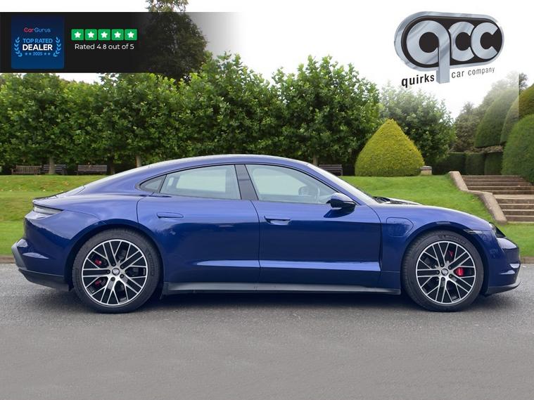 VAT QUALIFYING SO PRICE INCLUDES VAT!! NATIONWIDE DELIVERY AVAILABLE! THIS PORSCHE TAYCAN PERFORMANCE 79.2kWh 4S FINISHED IN GENTIAN BLUE BENEFITS FROM THE FOLLOWING SPECIFICATION, 5 SEATS (2+1 REAR SEAT SYSTEM), PANORAMIC GLASS ROOF, PASM (PORSCHE ACTIVE SUSPENSION MANAGEMENT), ELECTRIC EXTERIOR ENGINE SOUND, REAR VIEW REVERSE CAMERA, SPORTS M/F/S/WHEEL WITH CRUISE CONTROL, ELECTRIC HEATED MEMORY SEATS, ELECTRIC FOLDING EXTERIOR MIRRORS, FRONT AND REAR PARK DISTANCE CONTROL, PRIVACY GLASS, ISOFIX POINTS, CENTRE ARM REST, PAN ROOF, QUIRKS CAR COMPANY ARE VERY PROUD WINNERS OF RUNNER UP FOR AUTOTRADER RETAILER OF THE YEAR 2021, WINNERS OF AUTOTRADER HIGHLY RATED FOR OUR CUSTOMER SERVICE 2021/20, AND WINNERS OF CAR GURUS TOP RATED DEALER 2021/20/19. WE USE THIRD PARTY SOURCES TO OBTAIN STANDARD AND OPTIONAL FITTED FEATURES AND SPECIFICATIONS. WE CANNOT BE HELD LIABLE FOR ITS ACCURACY SO PLEASE VERIFY THESE DETAILS WHEN VIEWING THE VEHICLE PRIOR TO PURCHASE. YOU MUST PHYSICALLY CHECK THE SPECIFICATION OF THE VEHICLE ON SITE PRIOR TO PURCHASE.