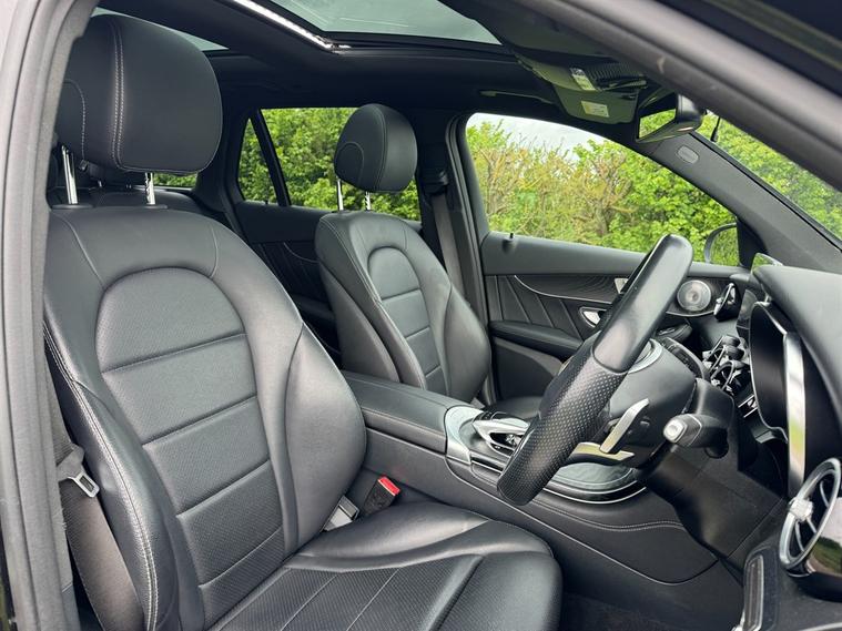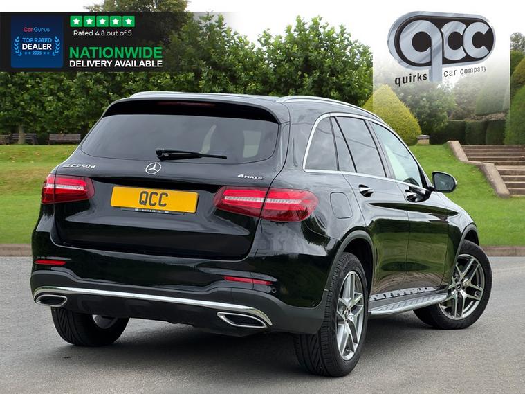 NATIONWIDE DELIVERY AVAILABLE! THIS MERCEDES GLC250d 2.1 AMG LINE 4MATIC FINISHED IN OBSIDIAN BLACK WITH BLACK LEATHER AND GREY STITCHING BENEFITS FROM THE FOLLOWING SPECIFICATION, PREMIUM PLUS PACK, ELECTRIC PANORAMIC GLASS SUNROOF WITH ELECTRIC BLIND, 19" ALLOYS, BURMESTER SOUND SYSTEM, DYNAMIC DRIVING MODES, RUNNING BOARDS, SAT NAV, REAR VIEW REVERSE CAMERA, M/F/S/WHEEL WITH CRUISE CONTROL, PADDLE SHIFT AND VOICE CONTROL, ELECTRIC HEATED MEMORY SPORTS SEATS WITH LUMBAR SUPPORT, ELECTRIC FOLDING EXTERIOR MIRRORS, FRONT AND REAR PARK DISTANCE CONTROL, DUAL ZONE AIR CON CLIMATE CONTROL, AUTOMATICALLY DIMMING REAR VIEW MIRROR, AUTOMATIC HEAD LIGHTS, AMBIENT LIGHTING, BLUETOOTH PHONE PREP, POWER TAIL GATE/BOOT LID, PRIVACY GLASS, CENTRE ARM REST, PAN ROOF, QUIRKS CAR COMPANY ARE VERY PROUD WINNERS OF RUNNER UP FOR AUTOTRADER RETAILER OF THE YEAR 2021, WINNERS OF AUTOTRADER HIGHLY RATED FOR OUR CUSTOMER SERVICE 2021/20, AND WINNERS OF CAR GURUS TOP RATED DEALER 2021/20/19. WE USE THIRD PARTY SOURCES TO OBTAIN STANDARD AND OPTIONAL FITTED FEATURES AND SPECIFICATIONS. WE CANNOT BE HELD LIABLE FOR ITS ACCURACY SO PLEASE VERIFY THESE DETAILS WHEN VIEWING THE VEHICLE PRIOR TO PURCHASE. YOU MUST PHYSICALLY CHECK THE SPECIFICATION OF THE VEHICLE ON SITE PRIOR TO PURCHASE.