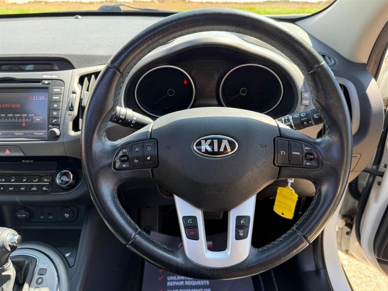This 2014 Kia Sportage CRDi KX-3 presents a remarkable opportunity with its low mileage of just 84, 629 miles and having had only two owners. This well maintained four wheel drive model is powered by an efficient 2.0 litre diesel engine and boasts a generous boot space, making it practical for everyday use and longer journeys alike. Inside, you'll find a comfortable cabin equipped with dual automatic climate control and a luxurious electric panoramic sunroof with a safety function for effortless enjoyment. Further enhancing your driving experience, this KX-3 variant features automatic Xenon headlights with auto levelling, ensuring optimal visibility in all conditions. Connectivity is made simple with Bluetooth, allowing for seamless music streaming. The low insurance group rating is a significant advantage, indicating lower running costs compared to similar vehicles. Combined with its impressive boot capacity, this Kia Sportage offers excellent value and practicality for any discerning driver.