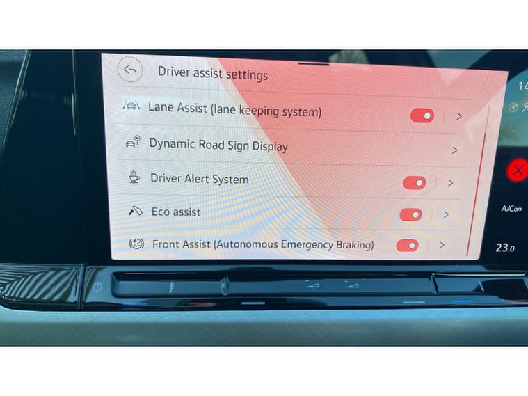 - Adaptive cruise control (ACC) with speed limiter and front assist (reacting to vehicles pedestrians and cyclists)