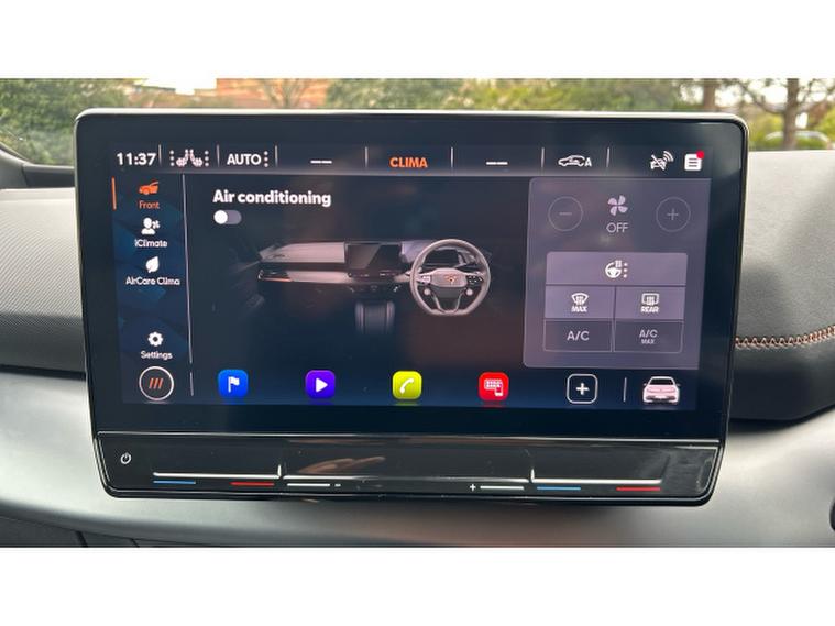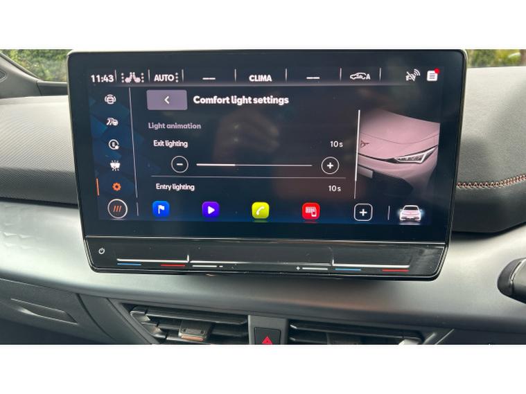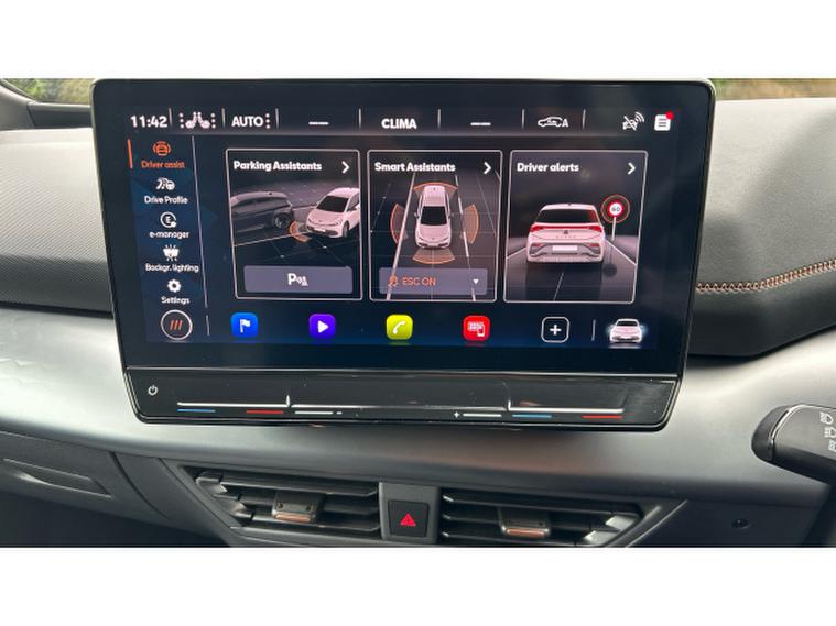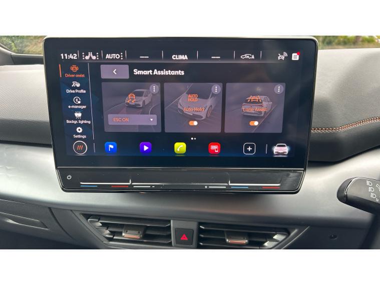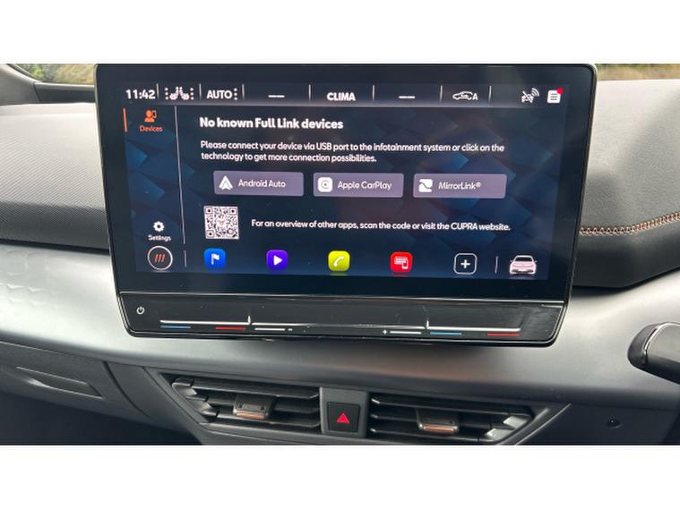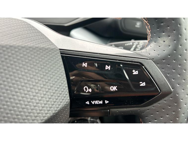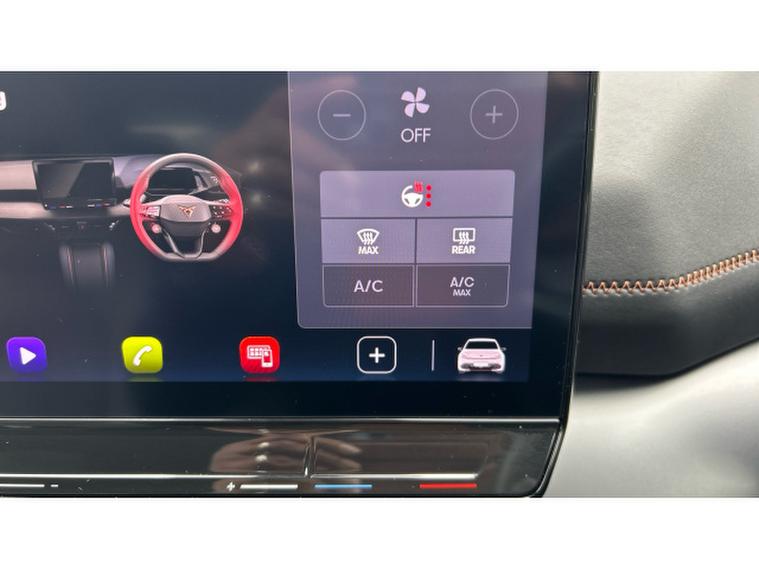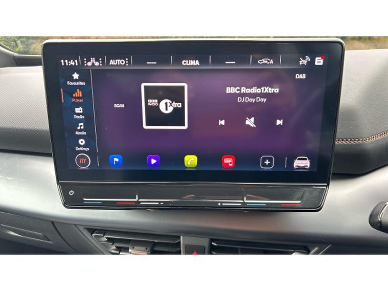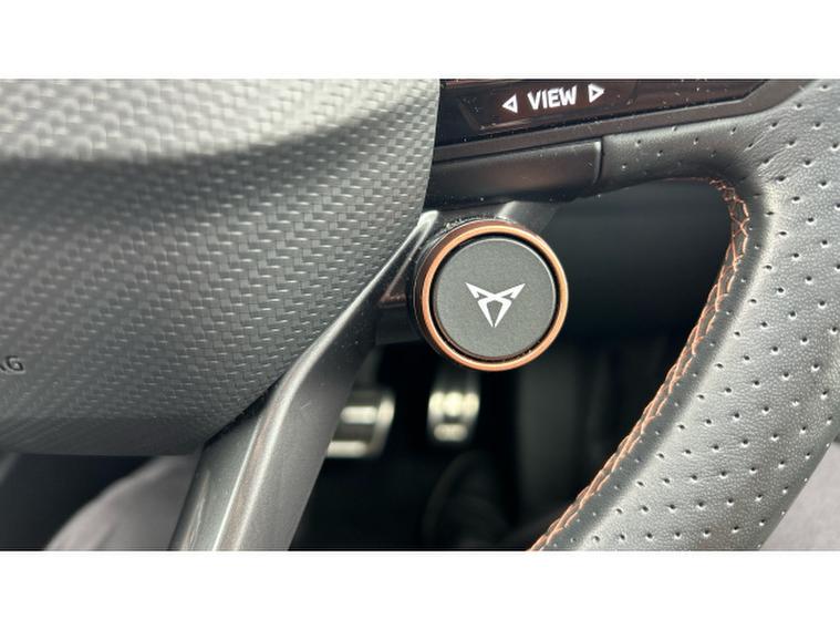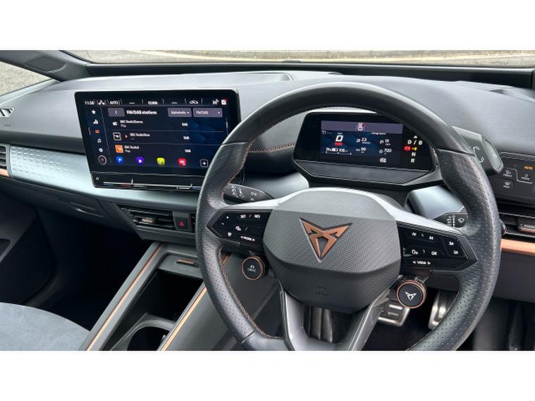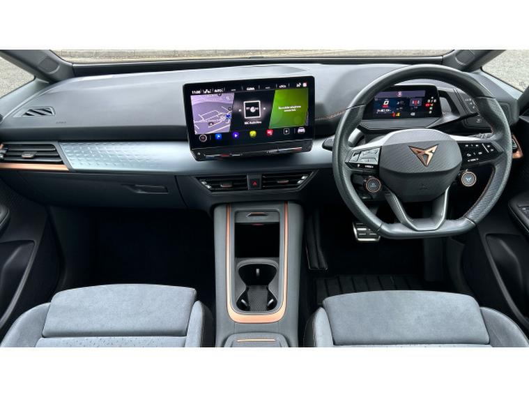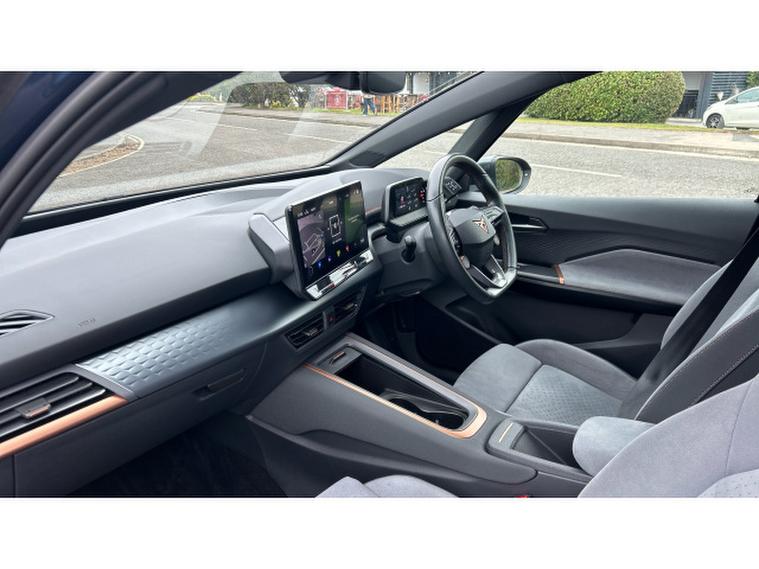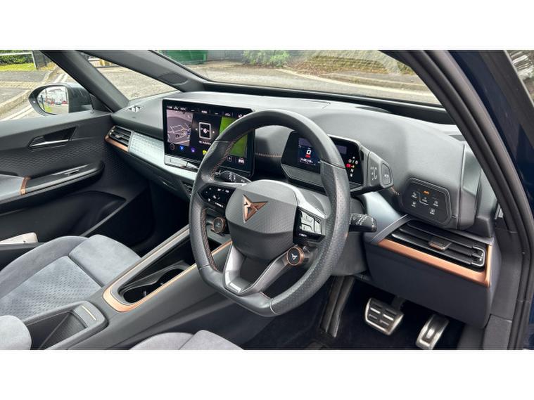 Inside, the V3 trim transforms the cabin into a high-tech, premium environment. A fully digital cockpit display pairs with a large central touchscreen infotainment system featuring navigation and wireless Apple CarPlay and Android Auto connectivity. Heated front sports seats, a heated steering wheel and dual-zone climate control ensure year-round comfort, while ambient lighting and CUPRAs signature copper accents create a distinctive, modern feel. A panoramic sunroof floods the interior with light, enhancing the sense of space. Advanced driver assistance systems including adaptive cruise control, lane assist, a rear-view camera and parking sensors add confidence and convenience to every journey.