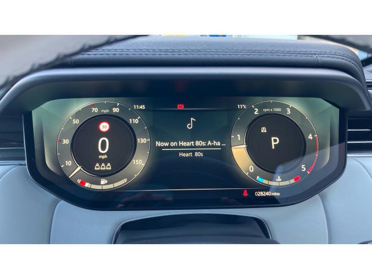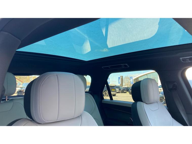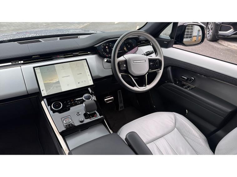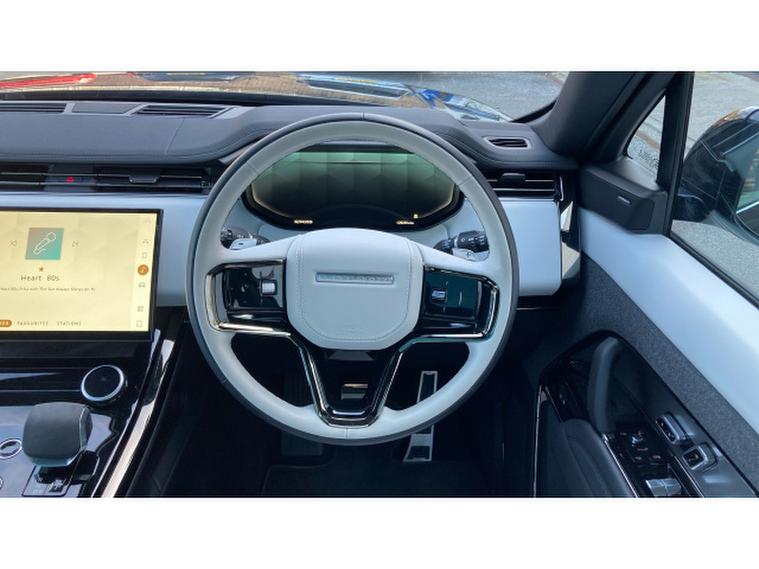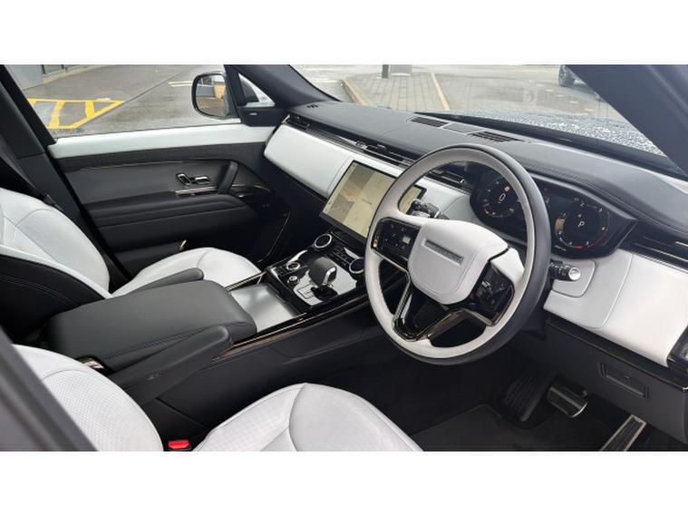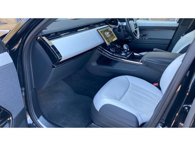 This example stands out with its deep Santorini Black finish, perfectly complemented by the satin black alloys and privacy glass. Inside, the cabin offers a modern, minimalist design with high-quality materials throughout, delivering the premium feel you expect from Range Rover.