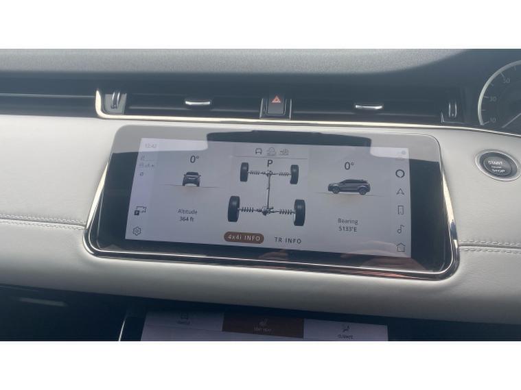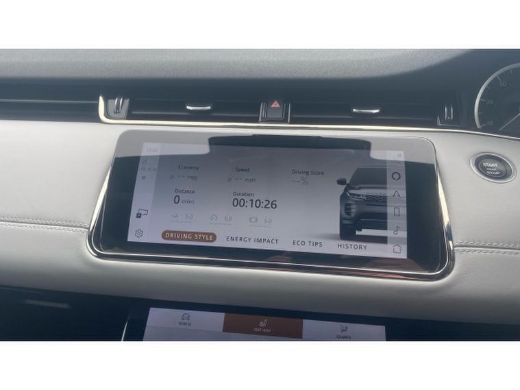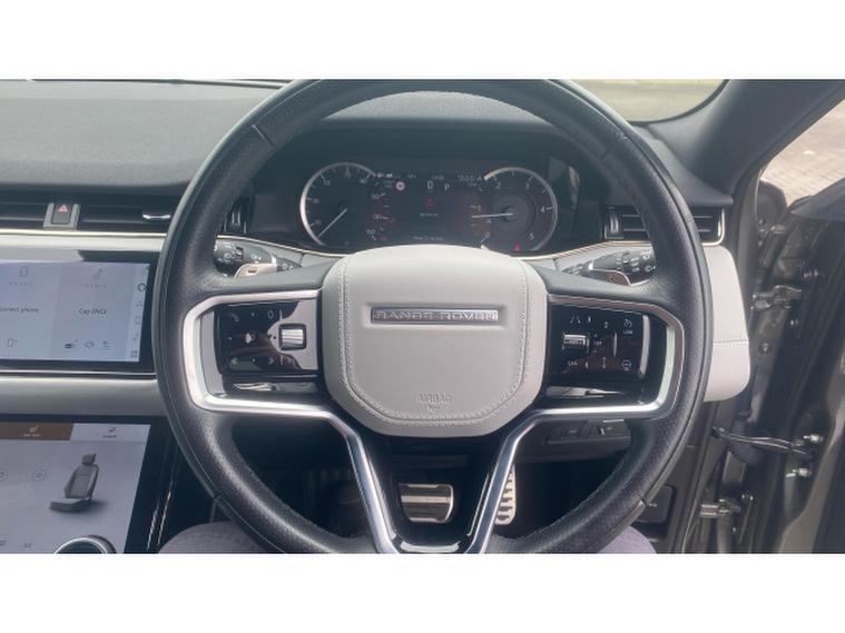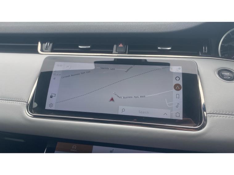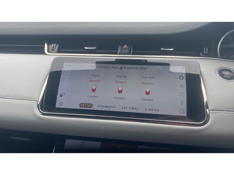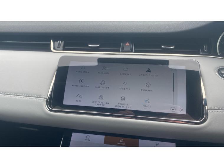 The R-Dynamic HSE features Pivi Pro Infotainment with curved glass touchscreen, navigation, wireless Apple CarPlay and Android Auto, alongside an Interactive Driver Display and Meridian sound system. Comfort is enhanced with heated and cooled electric memory front seats, heated steering wheel, dual-zone climate control and configurable ambient lighting. Driver assistance features include front and rear cameras, adaptive cruise control and front and rear parking sensors, while LED headlights with signature DRL complete the refined exterior.