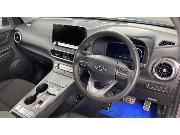 The exterior presents beautifully in metallic grey, highlighting the Konas sharp, contemporary lines, while the interior offers a well-appointed, high-quality cabin designed around comfort and advanced technology. Premium trim level enhancements elevate convenience and usability, ensuring every journey feels intuitive and refined.