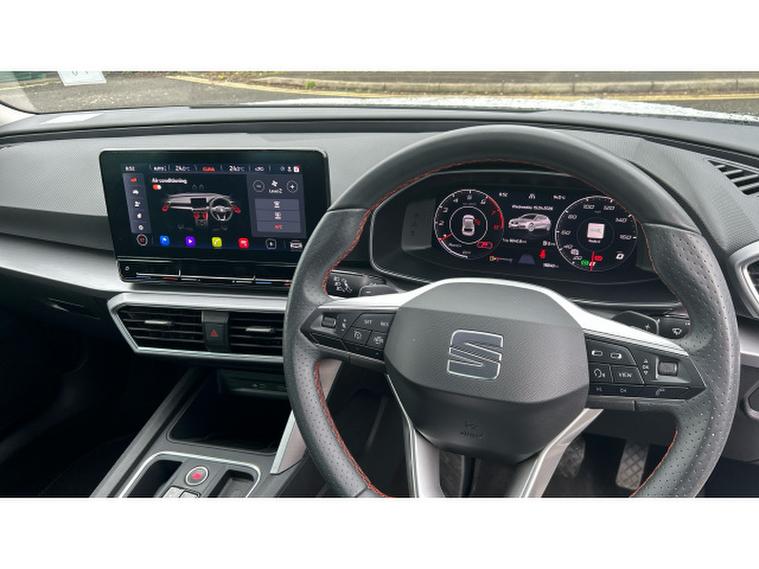 Inside, the FR trim elevates the cabin with a sporty yet premium feel. A fully digital cockpit display provides clear, customisable driving information, while the large central touchscreen infotainment system offers navigation and seamless connectivity through Apple CarPlay and Android Auto. Sports seats offer excellent support, while dual-zone climate control ensures comfort for all passengers. Ambient lighting adds a modern touch, and advanced driver assistance systemsincluding adaptive cruise control, lane assist, front and rear parking sensors and a rear-view cameraenhance safety and convenience.