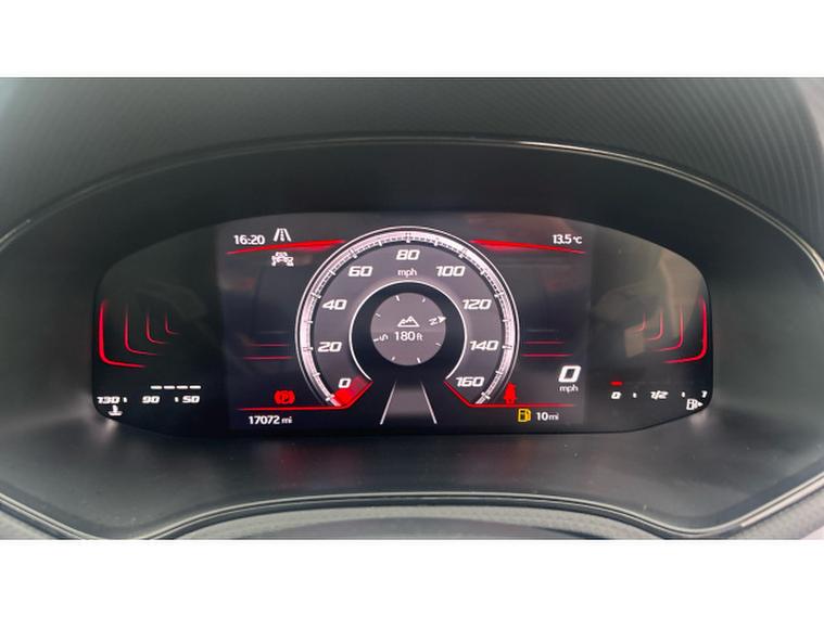Step inside and the FR trim creates a sporty, modern cabin that feels far more premium than you might expect. A fully digital cockpit display sits ahead of the driver, complemented by a large central touchscreen infotainment system featuring satellite navigation and seamless Apple CarPlay and Android Auto connectivity. Sports seats offer excellent support, while air conditioning and cruise control ensure comfort on every journey. Ambient lighting adds a stylish touch, and advanced driver assistance systems including lane assist, front assist and parking sensors provide added confidence behind the wheel.