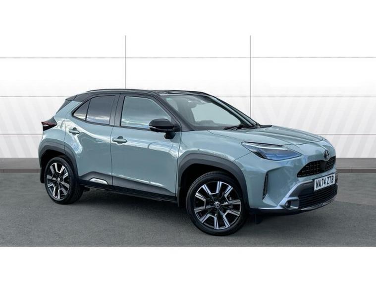 Toyota Yaris Cross 1.5 Hybrid 130 Premiere Edition 5dr CVT Hybrid Estate, , Built on Toyota's GA-B platform, the Yaris Cross offers agile handling, a low centre of gravity, and a comfortable ride. The Premiere trim stands out with high-end equipment such as leather upholstery, a JBL sound system, head-up display, and advanced Toyota Safety Sense technologies for enhanced driver assistance. The front-wheel-drive (FWD) layout ensures efficiency and practicality, with great fuel economy and emissions kept relatively low. Overall, the Yaris Cross Premiere FWD combines compact dimensions, hybrid efficiency, and premium comfort, making it a compelling choice in the small SUV segment. Toyota Yaris Cross Premiere FWD is a stylish and efficient compact SUV that blends urban practicality with premium features. Powered by a 1.5-litre self-charging hybrid system producing up to 129bhp, it delivers smooth performance and excellent fuel economy, making it ideal for city driving and longer journeys alike.
