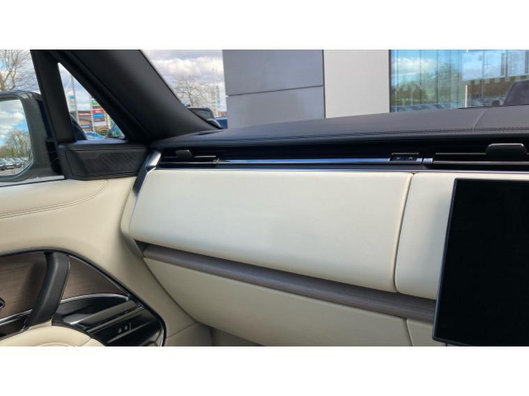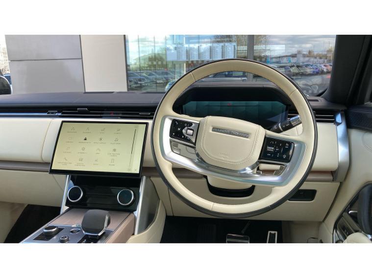 Land Rover Range Rover 3.0 D350 First Edition 4dr Auto Diesel Estate, , Vertu JLR Bolton are proud to offer this stunning Range Rover 3.0 D350 First Edition finished in Santorini Black metallic with Perlino semi aniline leather interior. This one owner car has been immaculately looked after by its former owner and comes with a Full Service History with 2 former JLR services with us servicing the car in April 2026. This car comes with optional deployable sidesteps, 23 inch black alloys, and shadow exterior pack. Standard features include 11.4 inch rear entertainment, heated and cooled massage leather seats, 13.1 inch touchscreen with Pivi Pro Navigation, adaptive cruise control, three zone climate control, sliding glass panoramic sunroof, clear sight rear view mirror, heated steering wheel, Apple car play, interactive driver display, heated windscreen, air suspension, terrain response, hill descent control, keyless entry, power tailgate, cubby box, trip computer, Pixel LED headlights, auto lights and wipers, parking sensors, 3D camera, power fold mirrors, steering wheel audio controls, lane departure warning, black brake callipers, fridge, Meridian signature sound system, front fog lights heads up display, cabin lighting, blind spot assist, DAB radio, Bluetooth and much more. This car is ready to view, test drive and drive away today and comes as part of the Approved JLR programme which includes 12 months warranty, 12 months roadside assistance, MOT test warranty, 165 multi point inspection and complimentary experience day as part of purchase.