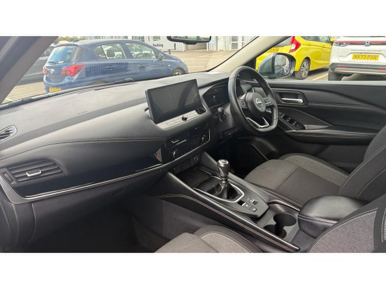 Powered by a 1.3‑, litre DiG‑, T petrol engine with mild‑, hybrid (MH) technology, this Qashqai offers an engaging drive with improved efficiency and responsiveness. The mild‑, hybrid system assists during acceleration and helps reduce fuel consumption and emissions without compromising performance. The engine is paired with either a smooth manual or efficient automatic transmission depending on specification, providing confident driving in urban traffic or on open roads. Ride comfort is refined, with composed handling and a quiet cabin that makes longer journeys relaxing.