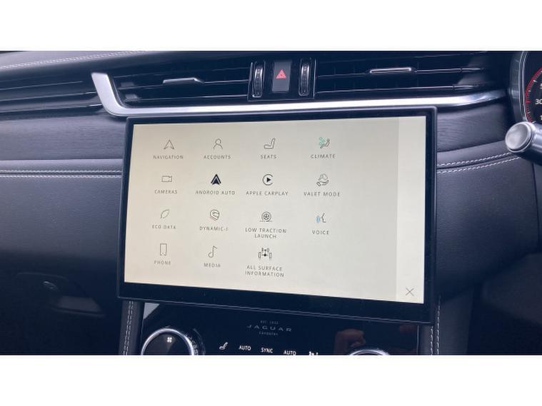 Jaguar F-Pace 2.0 D200 R-Dynamic HSE 5dr Auto AWD Diesel Estate, , The 2021 Jaguar F-Pace Diesel Estate 2.0 D200 R-Dynamic HSE 5dr Auto AWD is a compelling blend of performance, luxury and all-weather capability, delivering the kind of driving experience that feels as engaging as it is refined. Under the bonnet, a 2.0-litre mild-hybrid diesel engine producing 204PS works seamlessly with an eight-speed automatic gearbox and intelligent all-wheel drive, offering strong, effortless performance 062mph in around 8 . while still returning over 40mpg, making it a capable long-distance cruiser.The R-Dynamic HSE trim brings a distinctly sporting edge, with sharper styling, larger alloys and a cabin trimmed in premium materials, complemented by features such as heated seats, configurable ambient lighting and a heated steering wheel that elevate everyday comfort.Technology is a clear highlight, with an 11.4-inch touchscreen running Jaguars Pivi Pro system, a digital driver display, wireless smartphone connectivity and a suite of advanced driver aids including adaptive cruise control, lane assist and blind-spot monitoring, all working to enhance both convenience and safety.Practicality remains strong, too, with a spacious five-seat layout and a generous 601-litre boot, ensuring it retains genuine family usability alongside its premium feel.The result is a sophisticated SUV that successfully combines performance, luxury and everyday versatility, wrapped in unmistakably sleek Jaguar design.