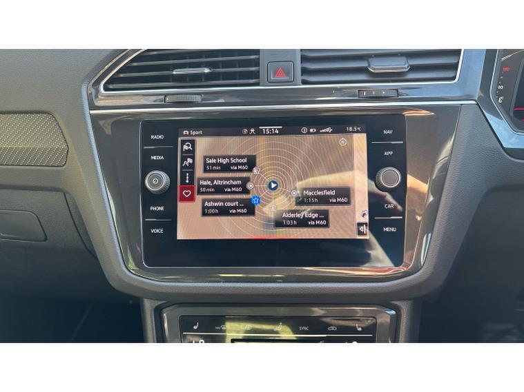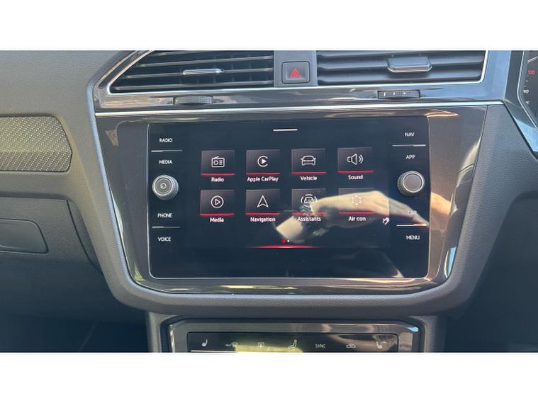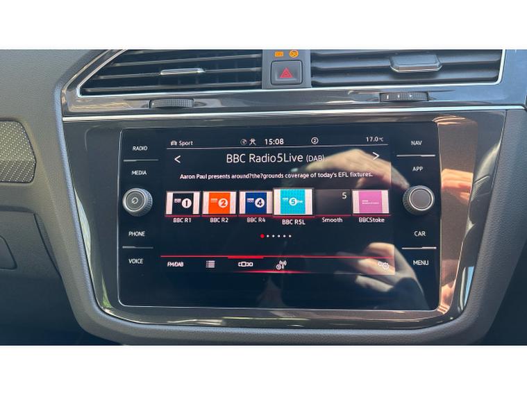 The R-Line specification enhances the Tiguan's sporty appeal with distinctive body styling, upgraded alloy wheels, and premium interior touches. Inside, the cabin features a digital cockpit display and a high-resolution touchscreen infotainment system with satellite navigation, Bluetooth connectivity, and seamless smartphone integration via Apple CarPlay and Android Auto. The interior is finished with quality materials throughout, ensuring comfort for both driver and passengers.
