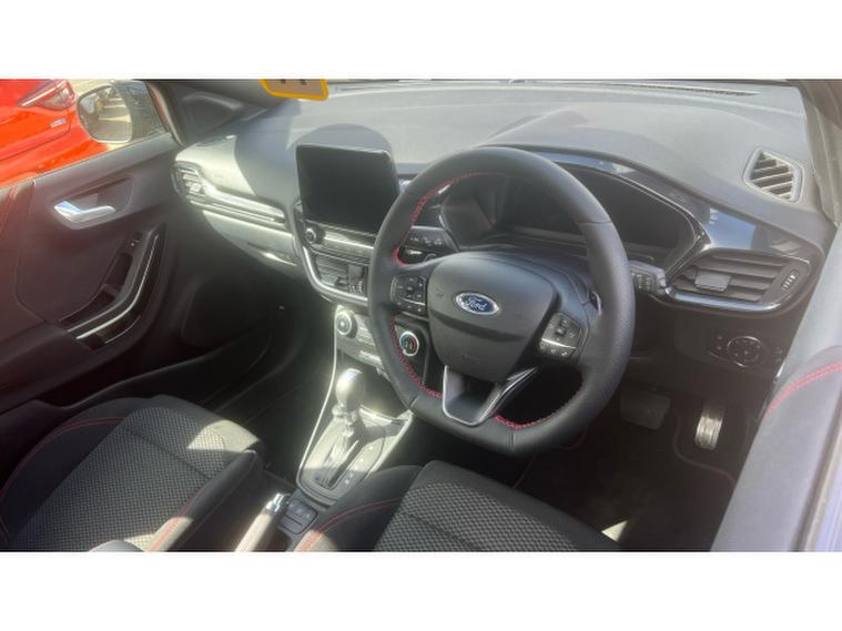 Inside, the Puma offers a premium feel with part-leather sports seats, a flat-bottomed steering wheel, and striking red stitching throughout. The intuitive infotainment system includes a touchscreen display with Apple CarPlay and Android Auto, keeping you connected on every journey. Youll also benefit from features such as satellite navigation, rear parking sensors, cruise control, and a digital instrument cluster for a truly modern cockpit feel.