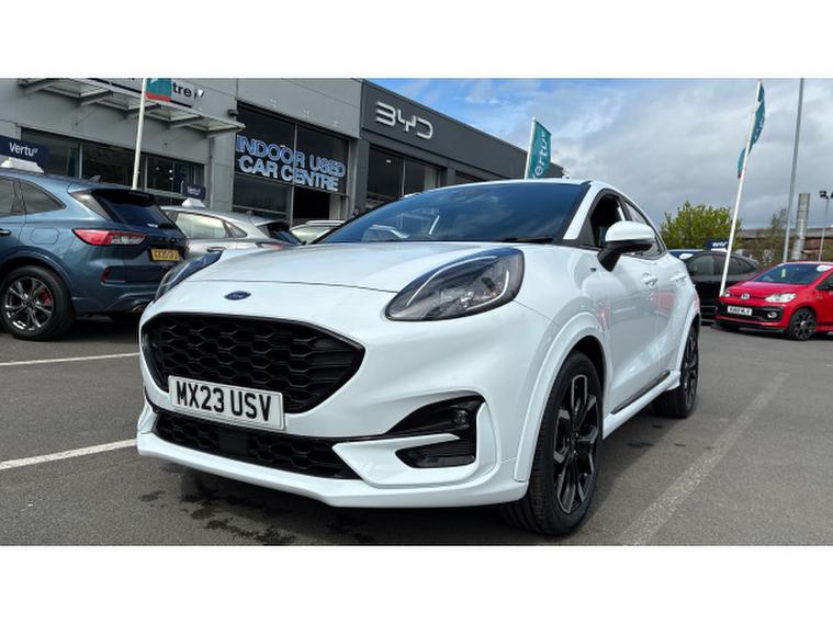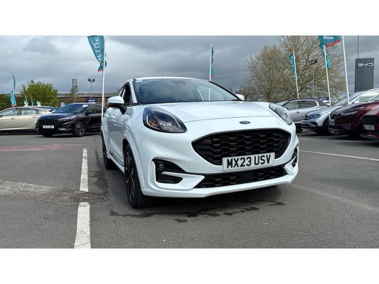 Ford Puma 1.0 EcoBoost Hybrid mHEV ST-Line X 5dr Petrol Hatchback, , This 2023 Ford Puma ST-Line X offers an exceptional opportunity with its remarkably low mileage of just 6057 miles. This stylish compact SUV is powered by an efficient 1.0L Petrol Hybrid engine, meeting Euro 6 emission standards. Inside, you'll find a host of premium features designed for comfort and connectivity, including a B&O Premium Audio System integrated with Ford SYNC 3 Navigation, offering seamless Android Auto and Apple CarPlay functionality, Bluetooth, and a luxury branded sound system. The cabin also boasts a Wireless Charging Pad alongside Electronic Air Temperature Control (EATC) for climate control and convenient wireless phone charging, further enhanced by rear parking sensors for effortless manoeuvring.