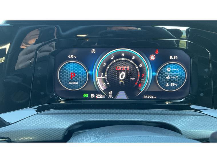 The GTI styling is unmistakable, with sporty design touches including GTI body styling, twin exhausts, distinctive alloy wheels and signature red detailing, giving it a bold and aggressive look. Inside, the cabin continues the performance theme with sports seats, a flat-bottom steering wheel and premium finishes throughout.