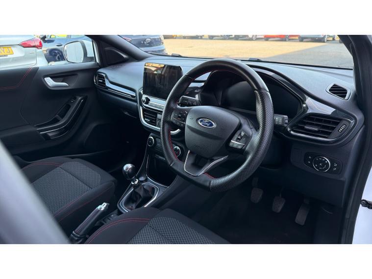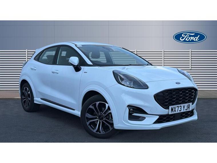 Ford Puma 1.0 EcoBoost Hybrid mHEV ST-Line 5dr Petrol Hatchback, , Ford Puma ST-Line 1.0 mHEV Frozen White. Presented in striking Frozen White, this Ford Puma ST-Line is a superb example of a modern, stylish and efficient compact SUV. With just 21, 416 miles on the clock, it offers a perfect balance of performance, technology and practicality, making it an excellent choice for a wide range of drivers. Powered by Fords responsive and economical 1.0 mHEV engine, this Puma delivers an engaging drive while maintaining impressive fuel efficiency. Selectable driving modes allow you to tailor the cars performance to suit every journey, whether you're navigating city streets or enjoying a longer motorway drive. The interior is well-equipped with a host of desirable features designed for comfort and convenience. The integrated satellite navigation system ensures you always stay on the right track, while Apple CarPlay and Android Auto provide seamless smartphone connectivity for music, calls and apps on the move. The heated front windscreen is perfect for those colder mornings, allowing for quick and easy defrosting. Practicality is further enhanced with rear parking sensors to assist with manoeuvring, automatic headlights for added ease, and power folding door mirrors for convenience in tighter spaces. The ST-Line styling adds a sporty edge both inside and out, giving the car a dynamic and modern presence on the road. This is a well-maintained, low mileage example that drives beautifully and is ready to be enjoyed by its next owner. Contact us today to arrange a viewing or test drive. At Vertu Motors Ford Bolton all our vehicles come fully prepared to the highest standard with our peace of mind Main Dealer Guarantee. This includes having any tyre replaced that has less than 3mm tread depth (legal limit is 1.6mm), minimum 6 months MOT and at least 6 months or 6, 000 miles till your next service. All the cars that we offer are HPI clear (to check there is no outstanding finance or prior accidents) and we do a full Government VOSA report check to verify the mileage. Nationwide delivery is available on all our vehicles, so call today.