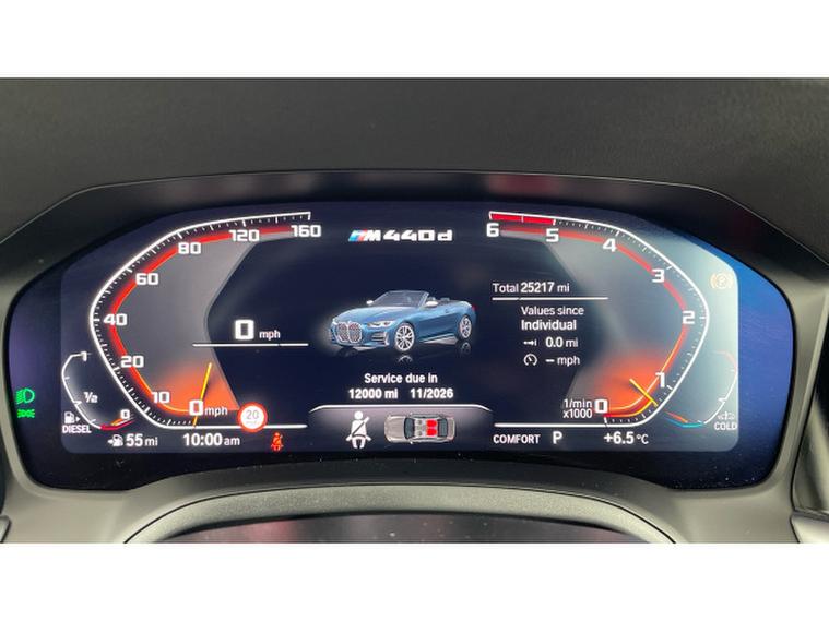 BMW 4 Series M440d xDrive MHT 2dr Step Auto Diesel Convertible, , This 2023 BMW 4 Series M440d is a superb example, having had only one owner since new. It boasts a powerful 3.0L Diesel Hybrid engine, paired with a smooth Four Wheel Drive system, ensuring excellent performance and efficiency. This Euro 6 compliant vehicle is equipped with the advanced Parking Assistant Plus, which includes a 360 degree camera, front and rear cameras, and front and rear sensors, making parking effortless. For added comfort during open top driving, it features a Warm Air Collar and a Wind Deflector.