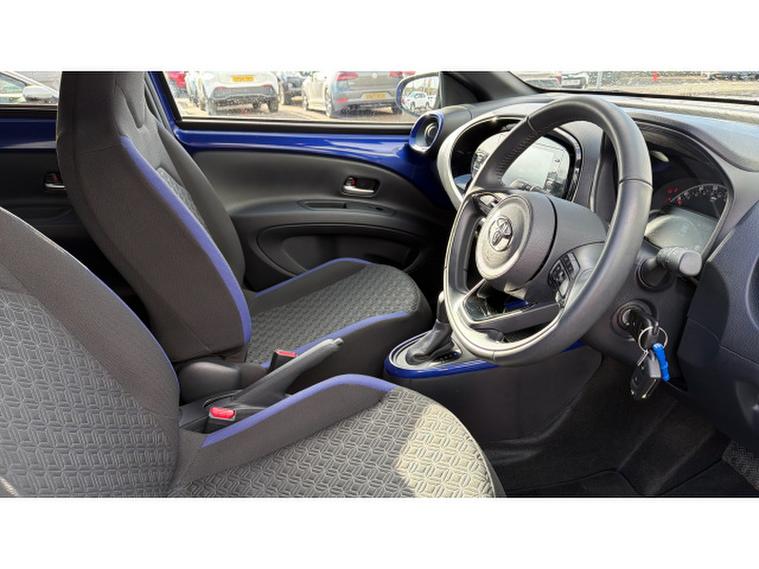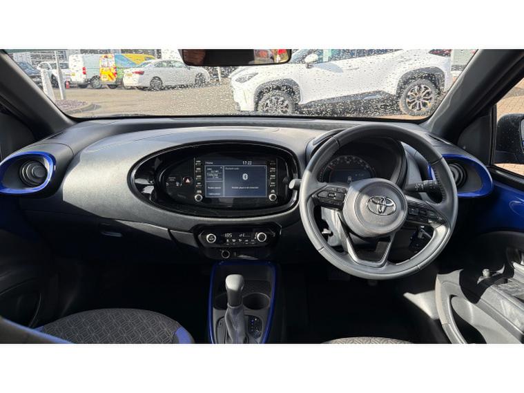 Toyota Aygo X 1.0 VVT-i Edge 5dr Auto Petrol Hatchback, , Turn heads and elevate your everyday driving with this stunning Toyota AYGO X 1.0 VVT-i Edge 5dr Auto, finished in the eye-catching and rare Juniper Blue Bi-tone paintwork. First registered on 16/01/2024 and with just 12, 539 miles on the clock, this compact crossover delivers the perfect blend of style, efficiency, and modern technology. The smooth automatic transmission makes city driving effortless, while its elevated ride height gives you a confident view of the road ahead. Packed with specification, the AYGO X Edge boasts a crisp touchscreen infotainment system with smartphone connectivity, advanced safety features including Toyota Safety Sense, reversing camera, climate control, and stylish alloy wheels. Plus, enjoy complete peace of mind with Toyotas incredible 10-year service-activated warranty, offering long-term reassurance thats hard to beat. A perfect choice for those who want standout looks, low running costs, and cutting-edge features in one exciting package.