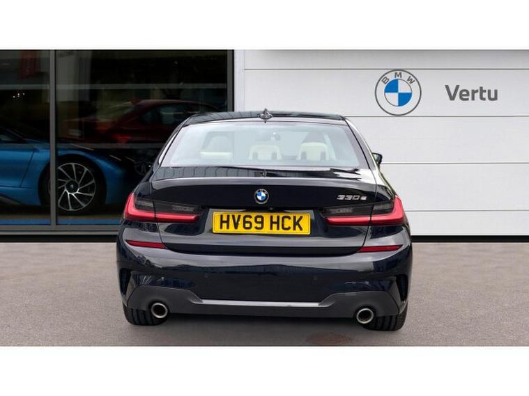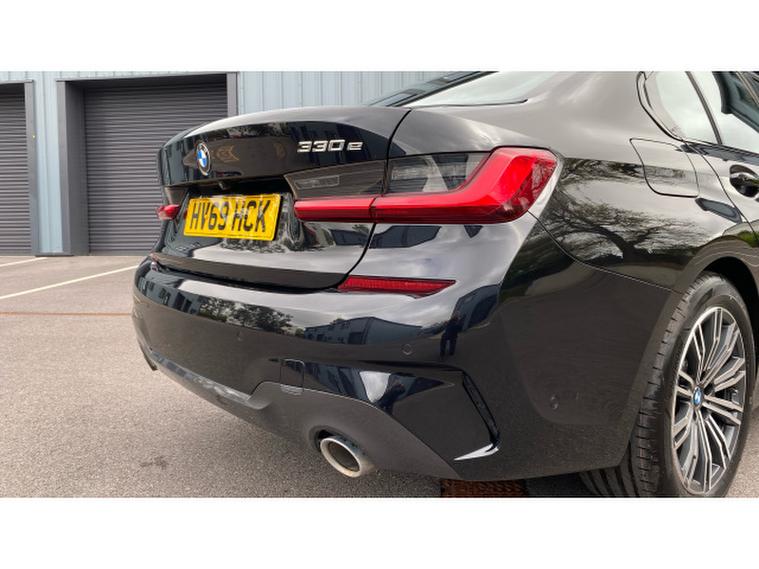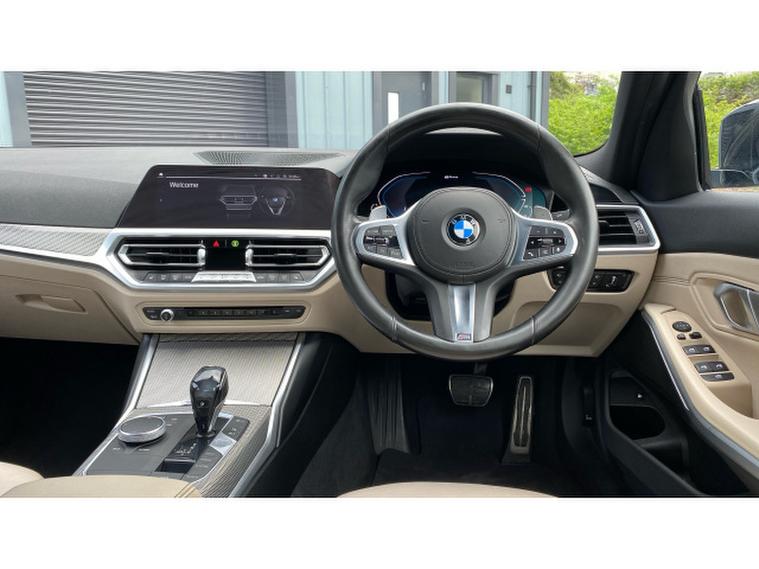 BMW 3 Series 330e M Sport 4dr Auto Saloon, , Experience the perfect balance of performance, efficiency, and executive style with this stunning BMW 330e M Sport Saloon. Finished in sophisticated Black Sapphire Metallic and paired with elegant Oyster Vernasca Upholstery, this vehicle delivers a truly premium presence both inside and out. Sitting on striking 18 M Double Spoke Alloy Wheels, it embodies the unmistakable sporting DNA that BMW is renowned for.