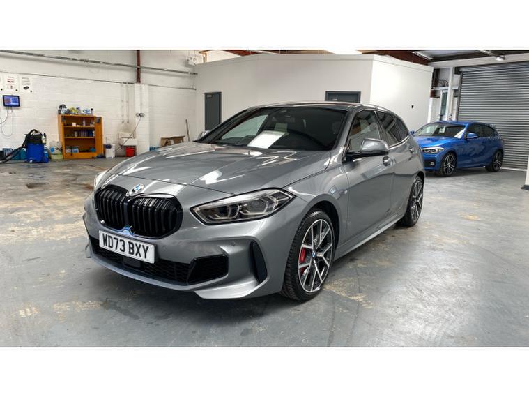 BMW 1 Series 128ti 5dr Step Auto [Live Cockpit Professional] Petrol Hatchback, , Experience pure driving enjoyment with this dynamic BMW 128ti Sports Hatch, a model that perfectly captures the brands sporting spirit. Finished in sophisticated Skyscraper Grey Metallic, its sharp lines and athletic stance are enhanced by 18 M Light Alloy wheels, giving it a confident and purposeful presence. Inside, the Black and Red Cloth upholstery adds a bold, performance-inspired feel while maintaining everyday comfort.