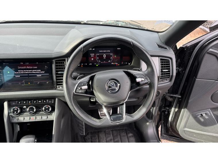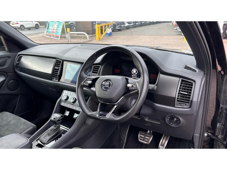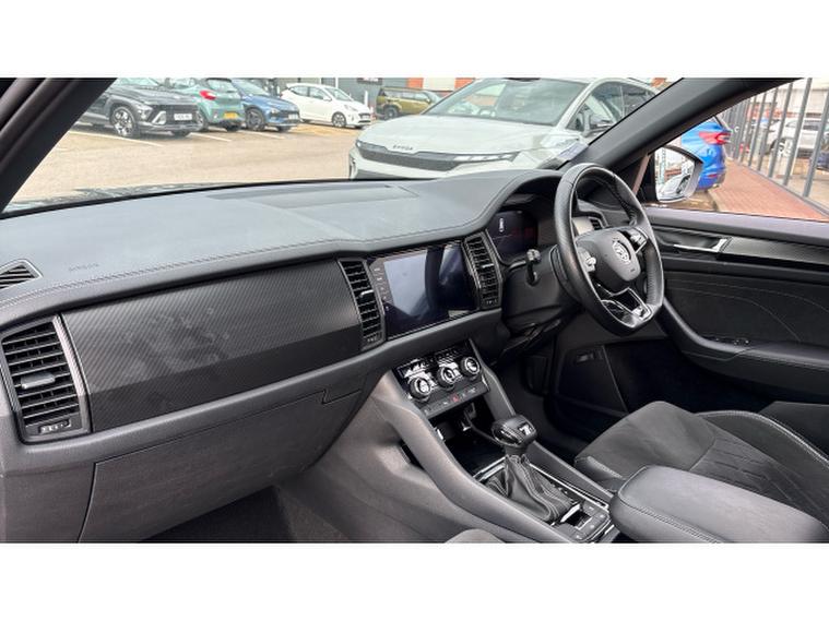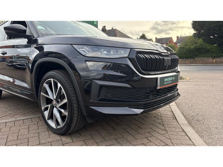 Skoda Kodiaq 1.5 TSI Sport Line 5dr DSG [7 Seat] Petrol Estate, , Discover this exceptional 2023 Skoda Kodiaq TSI SportLine, a 7 seat family SUV with remarkably low mileage for its year, having covered just 16601 miles. This Euro 6 compliant vehicle boasts a responsive 1.5 litre petrol engine and has been cherished by only one owner since new. Inside, you'll find a host of convenient features designed to enhance your driving experience, including Bluetooth connectivity for seamless audio streaming and calls, and wireless phone charging to keep your devices powered up. Parking is made easier with a rear view camera, and the electrically adjustable driver's seat with memory function ensures your perfect driving position is always ready. For added comfort on colder days, the front seats are heated.
