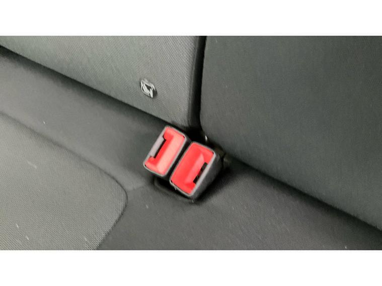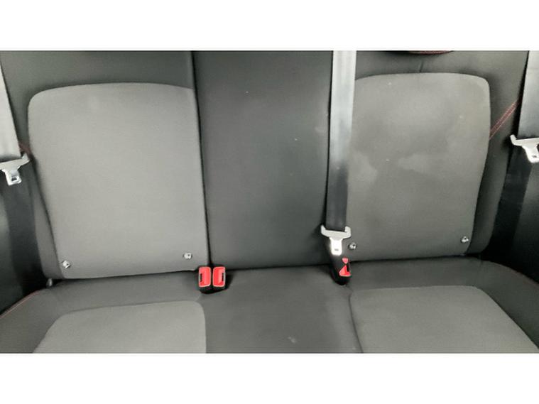 - Cloth upholstery with red stitching