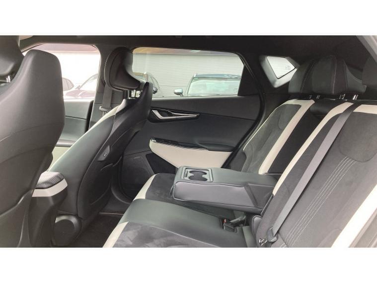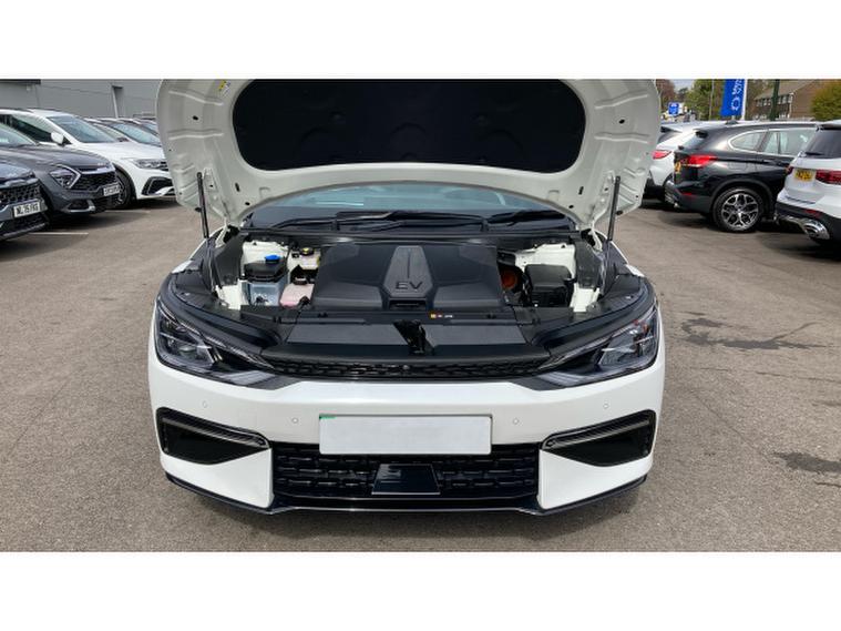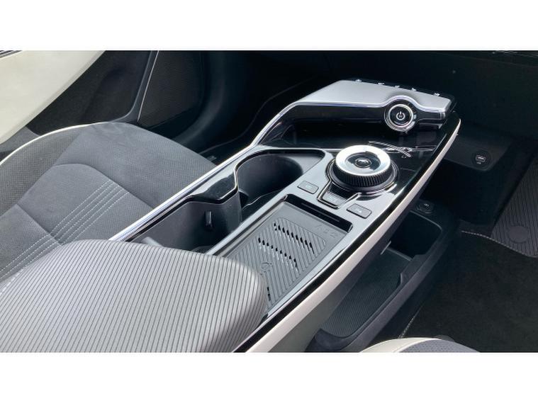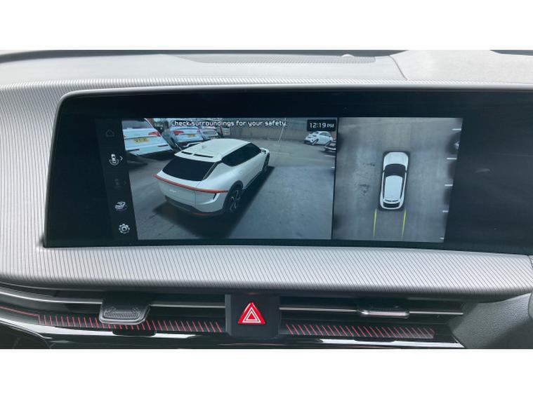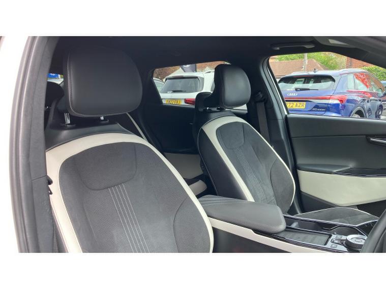 The Kia EV6 GT-Line S offers a refined electric driving experience, while the all-wheel drive system enhances stability and control in varying conditions, the 320 bhp output delivers responsive acceleration. A battery range of up to 324 miles allows for confident journeys between charges, making this electric car suitable for both daily use and longer journeys alike. Finished in a distinctive white paint, the EV6 GT-Line S presents a contemporary appearance complemented by 20-inch black alloy wheels and high gloss black trim accents. The sunroof with tilting and sliding function adds a sense of space to the interior, while the privacy glass and sleek body-coloured flush door handles underscore the modern styling. Artico suede seats with white leather bolsters and ambient lighting create a relaxing, upmarket atmosphere inside the cabin. Specification highlights include dual 12.3-inch curved displays for driver information and navigation, a Meridian premium sound system, and comprehensive driver aids such as the 360-degree around view monitor, augmented reality head-up display, and advanced collision avoidance systems. Both front and outer rear seats are heated, with ventilated front seats for comfort in all seasons.