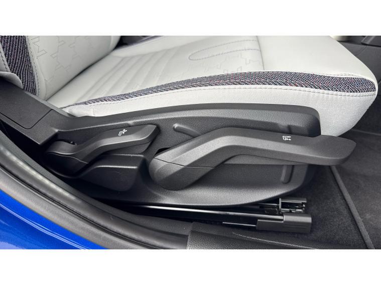 - Vescin/Cloth upholstery includes dash knit in black with blue accents