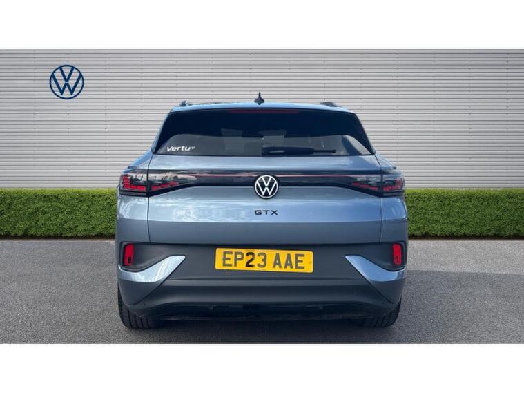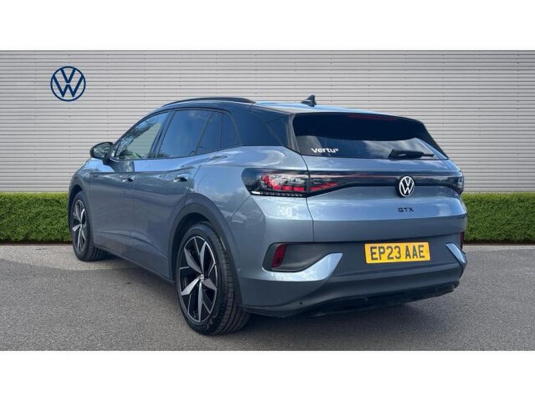 Volkswagen Id.4 220kW 4MOTION GTX 77kWh 5dr Auto [125kW Ch] Electric Estate, , This 2023 Volkswagen ID.4 GTX is a superb example, boasting a single owner and remarkably low mileage of just 19, 008 miles for its age. As an all electric, four wheel drive vehicle, it offers an impressive battery maximum range of 307 miles from its 82 kWh capacity. Charging is convenient, with a full charge at home taking approximately 12 hours and 40 minutes using a 7kW charger, while rapid public charging can take you from empty to 80% in as little as 40 minutes. This GTX model comes equipped with a Mode 2 charging cable, heated front seats for comfort, and Adaptive Cruise Control for relaxed journeys. Stay connected and entertained with App Connect, featuring wireless Apple CarPlay and Android Auto, and experience the future of driving with the Augmented Reality Head Up Display.