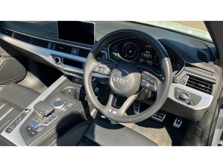 Audi A5 2.0 TFSI S Line 2dr S Tronic Petrol Convertible, , This 2019 Audi A5 Cabriolet 2.0 TFSI S Line 2dr S Tronic is a stunning example of a premium convertible, combining sleek design with refined performance and everyday usability. Powered by a responsive 2.0 TFSI petrol engine paired with the smooth S Tronic automatic gearbox, it delivers an engaging yet comfortable driving experience, whether cruising with the roof down or tackling longer journeys. The S Line specification enhances the car's sporty appeal, featuring stylish exterior detailing, a high-quality interior with part-leather sports seats, and a host of advanced technology including infotainment with smartphone connectivity and driver assistance features. With its elegant styling, strong performance and premium feel throughout, this A5 Cabriolet is the perfect choice for those seeking open-top driving with luxury and practicality.