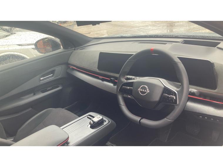 Under the skin sits a breathtaking 320kW dual motor powertrain powered by the 87kWh long range battery, delivering instant acceleration and electrifying responsiveness. Paired with Nissans advanced e‑, , 4ORCE all wheel control system, the result is phenomenal traction, razor sharp handling and a level of confidence that transforms every road into an opportunity. Whether carving through corners or cruising silently at speed, the Nismo tuned chassis and sport calibrated steering deliver a drive that feels truly special.