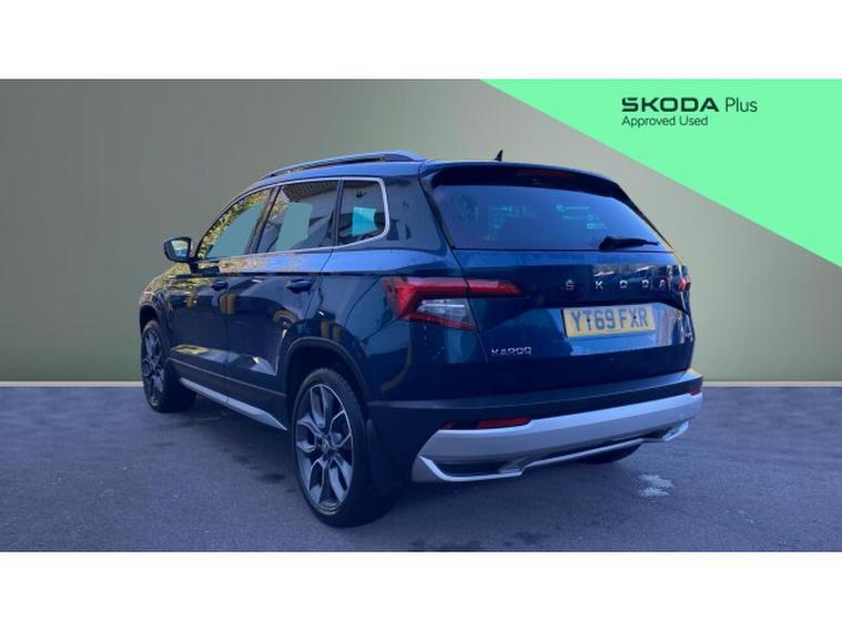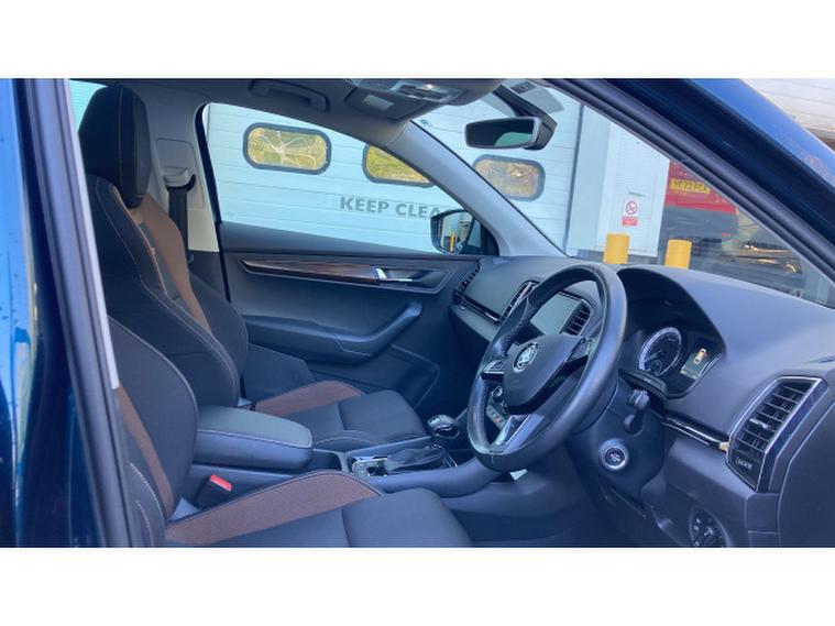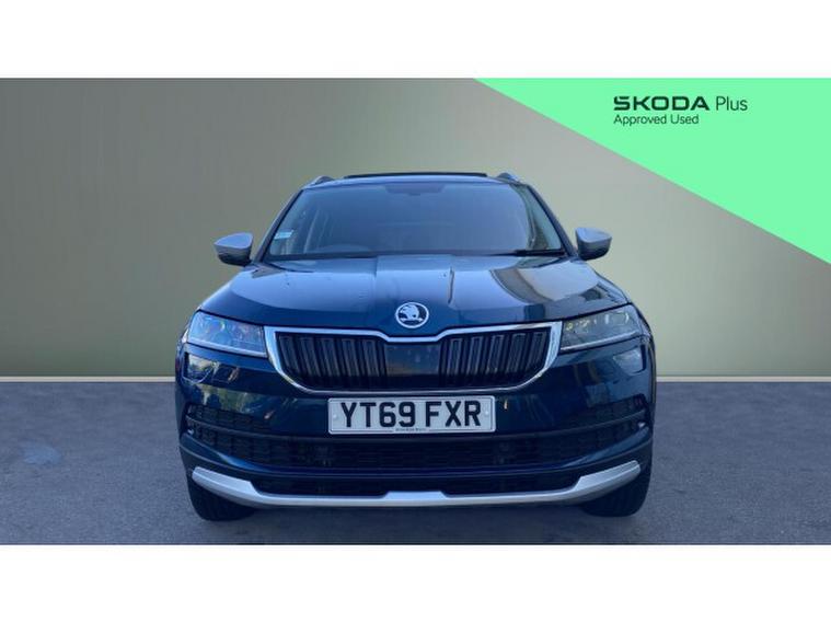 Skoda Karoq 2.0 TDI Scout 4x4 5dr DSG Diesel Estate, , This 2019 Skoda Karoq TDI Scout is a superb example, having had only one owner since new. It features a robust 2.0 litre diesel engine paired with four wheel drive, making it a capable and reliable choice. As a Euro 6 emission class vehicle, it meets modern environmental standards. This Scout trim level comes equipped with front and rear parking sensors, including parking assistance for both front and rear, and a rear view camera to aid manoeuvring. Comfort is enhanced by heated front seats, and the light and rain sensor system automatically activates the headlights and adjusts the rear view mirror, ensuring optimal visibility in varying conditions.