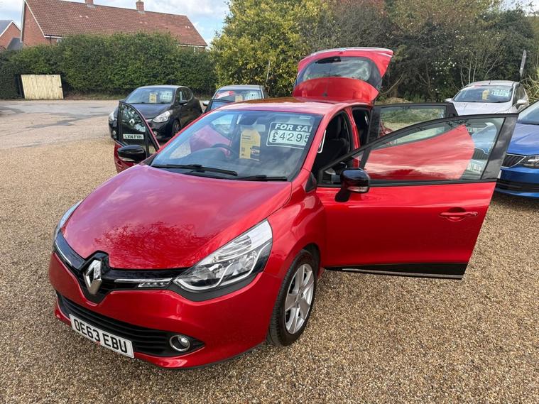 2013 RENAULT CLIO DYNAMIQUE MEDIANAV. 1.2L PETROL ENGINE, 5 DOOR, 5 SPEED MANUAL GEARBOX, RED. ONLY 61, 000 MILES FROM NEW AND INCLUDES A NEW CAMBELT KIT ALREADY FITTED. £170 A YEAR ROAD TAX. FULL 12 MOT ALREADY COMPLETED WITH NO ADVISORIES. INCLUDES A FULL SERVICE ALREADY COMPLETED. READY TO DRIVE AWAY. 3 MONTH MINIMUM IN-HOUSE WARRANTY FOR YOUR PEACE OF MIND & OPTIONS TO EXTEND UP TO 24 MONTHS. Enjoy the modern comforts of a Renault packed inside a sleek hatchback. With very impressive fuel economy, this Clio is cheap to run, easy to maintain and has a super reliable engine with a new cambelt fitted. This is certainly not one to miss if youre looking for a smooth driving experience. Dynamique Nav Spec List: 7 Inch Touchscreen Media Display, Satellite Navigation, Bluetooth Connectivity for Media and Telephone, Eco Driving Mode, Cruise Control, Speed Limiter, Air Conditioning, Bass Reflex Sound System. FUEL ECONOMY: URBAN 40.4 MPG. EXTRA URBAN 60.1 MPG. COMBINED 51.4 MPG. The car does appear on the v car register but has been repaired to the highest of standards, youd never know it was previously damaged. If youre in the market for Renault Clio, this certainly won't disappoint. £4, 295. MINIMUM £500 PART EXCHANGE ON ANY VEHICLE. ALL VEHICLES ARE INSPECTED AND ROAD TESTED BEFORE REACHING THE FORECOURT SO YOU CAN DRIVE AWAY WITH CONFIDENCE.UNIT 7, ROSE CENTRE RETAIL PARK, NORTH WALSHAM, NR28 0DR