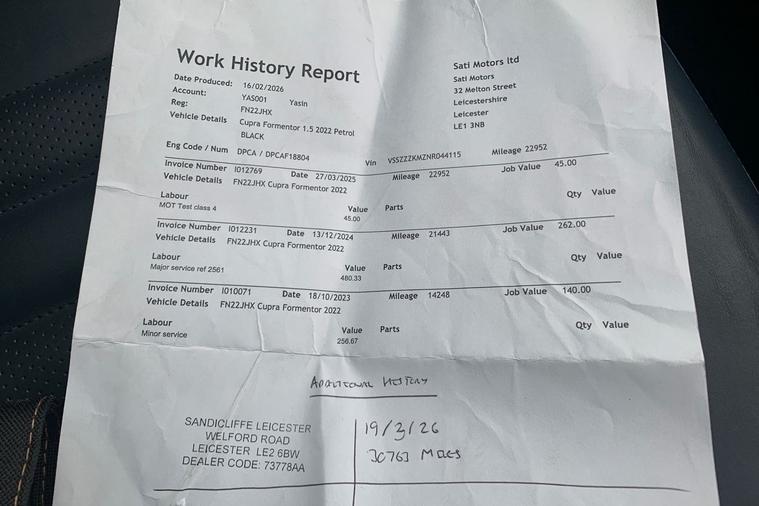 This 2022 CUPRA Formentor TSI V2 is presented boasting a full service history. This Euro 6 compliant 1.5 litre petrol model comes with 12 months MOT provided on purchase, offering peace of mind for its next owner. Experience the dynamic performance of the Formentor, with its impressive 0-62mph acceleration in just 8.9 seconds. This capability, combined with its Euro 6 emissions rating, demonstrates a refined balance of power and efficiency that sets it apart from other vehicles in its class.