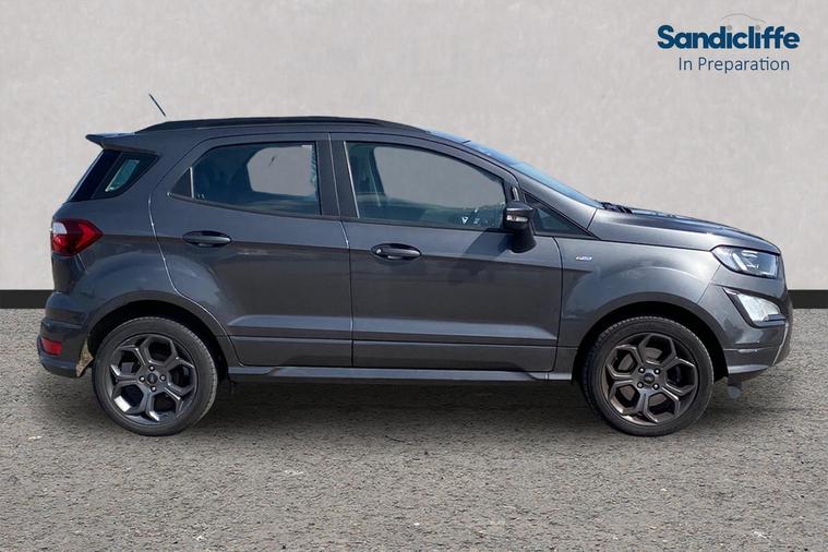 2023 Ford EcoSport 1.0 EcoBoost 125 ST-Line 5dr The Ford EcoSport ST-Line is the compact SUV that’s built for the city but ready for the open road. Finished in a professional Grey, this 2023 model features the award-winning 1.0L EcoBoost engine. It’s punchy, efficient, and offers that "king of the road" feeling in a package that’s still easy to park in tight spots. Sporty Styling: As an ST-Line, this car gets the full Ford Performance-inspired body kit, including unique bumpers, side skirts, and a large rear spoiler. Inside, you’re treated to sports seats with red stitching and a flat-bottomed steering wheel that makes every journey feel a bit more special. Modern Connectivity: The dash is dominated by the 8-inch SYNC 3 touchscreen. It’s incredibly easy to use and comes fully loaded with Satellite Navigation, Apple CarPlay, and Android Auto, so your maps and music are always just a tap away. Effortless Manoeuvring: Parking is completely stress-free thanks to the high-definition Rear View Camera and rear parking sensors that give you a clear view of exactly what's behind you. Winter Ready: Like most of our top-spec Fords, this one is designed for the British weather. It features the Quickclear Heated Windscreen, meaning you can say goodbye to the ice scraper on those frosty Loughborough mornings. This is a pristine 1-owner vehicle (0 previous keepers) first registered in March 2023. It’s a stylish, practical, and well-equipped SUV that’s been prepared to our rigorous standards and is ready to head home with its next owner. Why Buy From Sandicliffe? We’re a family-owned business with over 75 years of heritage here in the East Midlands. Our expert technicians ensure every vehicle is prepared to our rigorous "Sandicliffe Standards" before it ever reaches our forecourt, so you can drive away with total confidence in your new Ford. Location: This car is at our Loughborough site (LE11 5HN). The EcoSport ST-Line is a fantastic, easy-to-drive SUV—we’re here at the dealership whenever you’re ready to come and take a closer look.