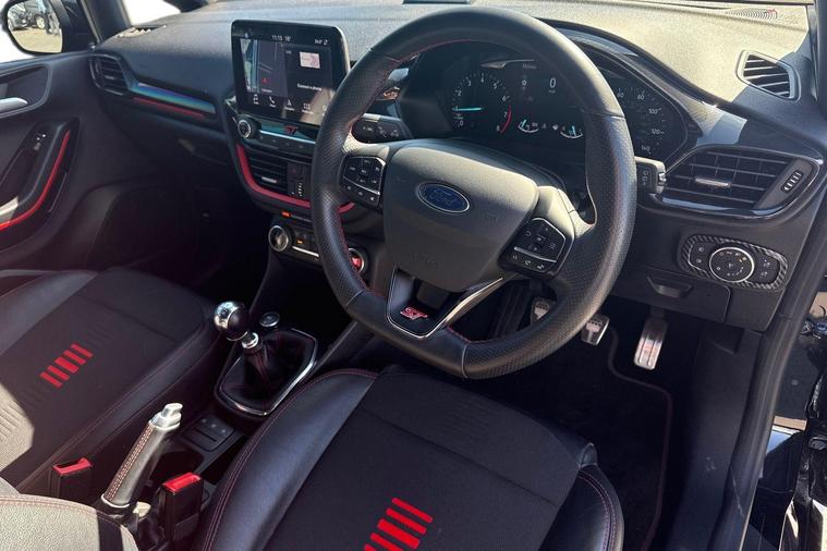 Sandicliffe MG Nottingham are pleased to present this stylish and sporty 2019 Ford Fiesta 1.0T EcoBoost ST-Line X, a well-equipped hatchback that combines dynamic performance, modern technology, and everyday practicality. Powered by a 1.0-litre EcoBoost turbocharged petrol engine producing 125PS, paired with a smooth 6-speed manual transmission, this Fiesta delivers a responsive and enjoyable driving experience. With 0–62 mph in around 9.9 seconds and fuel economy of up to approximately 50–57 MPG combined, it offers an excellent balance of performance and efficiency. The ST-Line X trim enhances the sporty appeal of the Fiesta, featuring distinctive styling, sports suspension, and a high level of interior specification for added comfort and convenience. Key Features: 1.0-litre EcoBoost turbocharged petrol engine – 125PS 6-speed manual transmission ST-Line X high-spec sporty trim Ford SYNC infotainment system with touchscreen Apple CarPlay & Android Auto Satellite navigation Bluetooth connectivity Cruise control with speed limiter Electronic automatic temperature control (climate control) Rear parking sensors Sports suspension Flat-bottomed leather steering wheel Sports seats with red stitching Keyless start Automatic headlights and rain-sensing wipers Quickclear heated front windscreen LED daytime running lights 17†alloy wheels ST-Line body styling kit Spacious 5-door hatchback layout with practical boot space With its combination of sporty ST-Line styling, efficient EcoBoost performance, and high level of equipment, the Ford Fiesta ST-Line X is an excellent choice for drivers seeking a fun-to-drive and well-equipped compact hatchback. Available now at Sandicliffe MG Nottingham. Contact our team today to arrange your viewing or test drive.