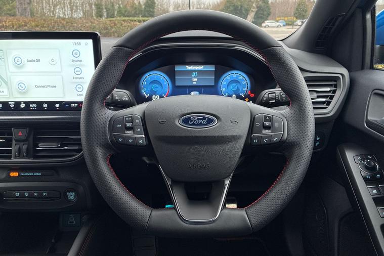 Sandicliffe Ford Nottingham are proud to present this exceptional 2026 Ford Focus ST-Line X Edition 5 Door 1.0L EcoBoost Hybrid (mHEV) 155PS Auto, a highly refined and sporty hatchback offered with delivery miles, combining cutting-edge technology, efficiency, and dynamic styling. Powered by a responsive 1.0-litre EcoBoost mild hybrid petrol engine producing 155PS, paired with a smooth 7-speed PowerShift automatic transmission, this Focus delivers an engaging yet efficient driving experience. Accelerating from 0–62 mph in approximately 9.0 seconds and achieving up to around 50+ MPG combined, it offers an excellent balance of performance and economy. The ST-Line X Edition trim sits at the top of the range, offering enhanced sporty styling alongside premium interior comfort and the very latest Ford technology, making it ideal for both everyday driving and longer journeys. Key Features: 1.0-litre EcoBoost Hybrid (mHEV) petrol engine – 155PS 7-speed PowerShift automatic transmission ST-Line X Edition high-spec trim Ford SYNC 4 infotainment system with large touchscreen display Satellite navigation Apple CarPlay & Android Auto compatibility 12.3†digital instrument cluster Wireless charging pad B&O premium sound system Cruise control with intelligent speed assist Lane keeping aid & pre-collision assist Rear parking sensors with reversing camera Dual-zone electronic automatic temperature control Keyless entry and push-button start Automatic headlights and rain-sensing wipers Full LED headlights with daytime running lights Heated front seats and heated steering wheel Sensico premium upholstery with red stitching 18†alloy wheels Power-folding door mirrors Sports-tuned suspension Spacious 5-door hatchback layout with practical boot capacity With its sharp ST-Line styling, advanced mild hybrid efficiency, and premium level of specification, the Ford Focus ST-Line X Edition is the perfect choice for drivers seeking a modern, sporty, and highly capable hatchback. This example benefits from delivery miles, offering a near-new driving experience without the wait. Available now at Sandicliffe Ford Nottingham. Contact our team today to arrange your viewing or book a test drive.